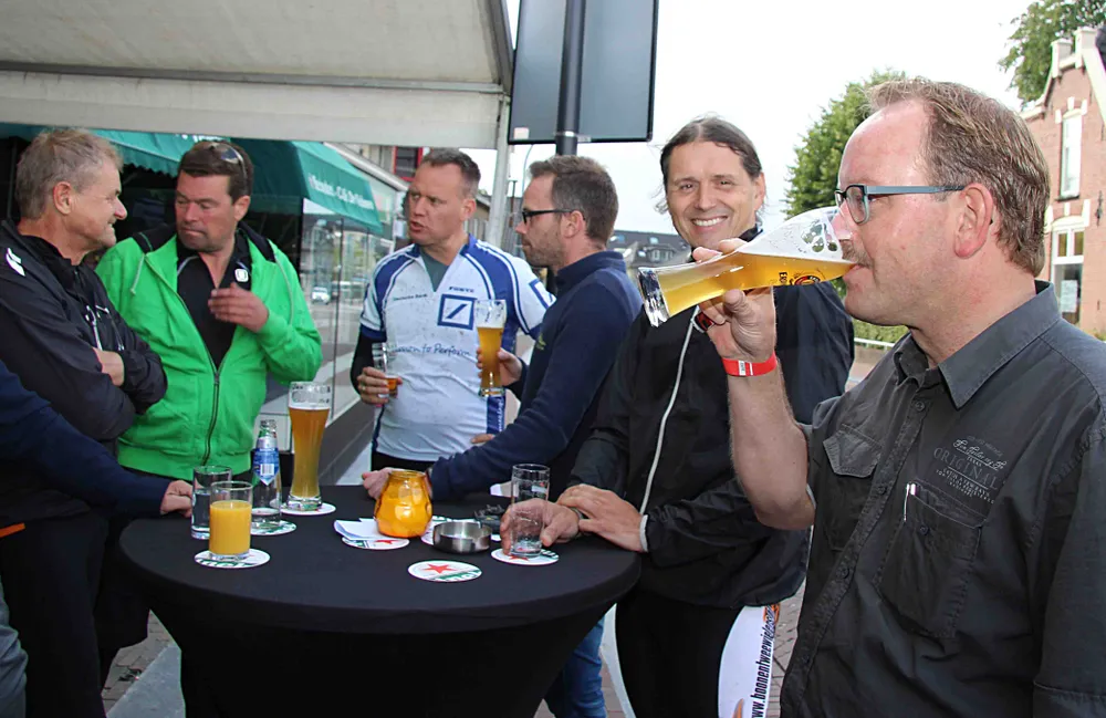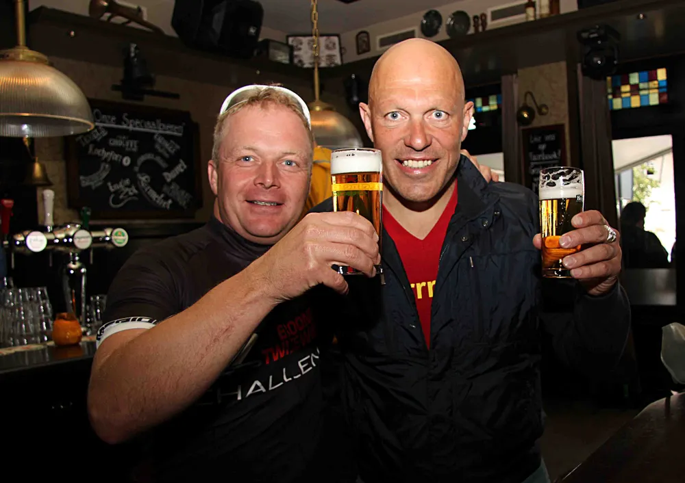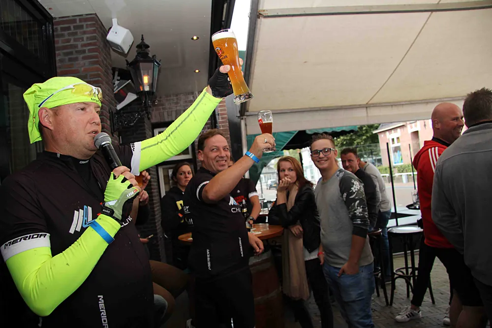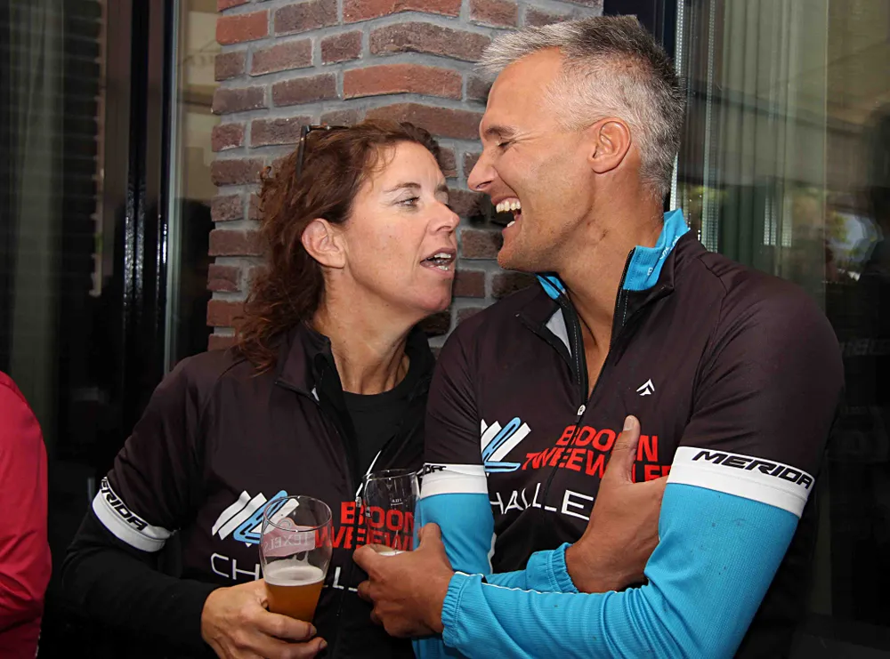 Een slok water zou de sportieve mountainbiker bijna fataal zijn geworden. "Gelukkig ben ik niet allergisch", koelde hij de de bult achterop zijn tong met een slok ijskoud bier. Afblussen met bier deden vrijwel alle deelnemers aan de Boonen Tweewielers Challenge, die vandaag, zondag 6 september werd verreden. Want de dorst door alle inspanningen en de euforie van het finishen was groot. Ook de stevige trek trouwens, vooral toen de barbecue werd ontstoken op het terras van Café de Molenaer.