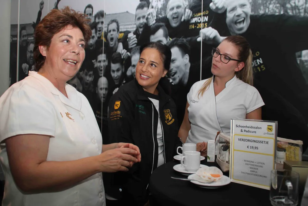 Bedrijven die de Damestrimclub van DVS'33 Ermelo sponsoren kunnen rekenen op een VIP-behandeling. Gisteren, donderdag 6 oktober, werden de sponsoren die de nieuwe outfit mogelijk hadden gemaakt in de watten gelegd met een avondje uit in de Businesslounge van de voetbalclub, en andersom.