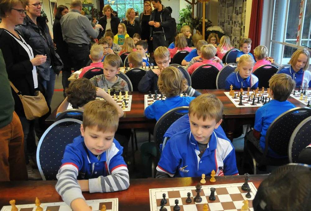 Belangstellende ouders, grootouders en docentenleefden als toeschouwer volop mee. Tijdens de zeven schaakrondes werd met veel inzet en concentratie een sportieve strijd geleverd. Tussen de rondes door was er het gezellige gejoel, dat deed denken aan een overvol schoolplein.