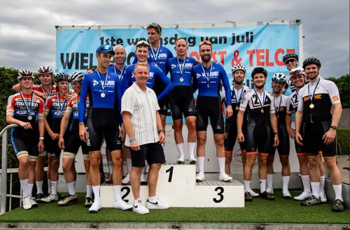 ‘Traditie van maken’ Opvallende man bij Wijori Vastgoed was voormalig wereld- en Olympisch kampioen baanwielrennen Theo Bos, die echter na vier rondjes moest afhaken. “In de warming-up reden we al 51 kilometer per uur, we hebben een paar jongens die echt ongelooflijk hard kunnen rijden. Dat zie ik ook in de training met de groep GP Harderwijk. Een paar maanden geleden ben ik gevraagd door Hans Mollema, de kapitein van het team. We konden met vier finishen en dat was maar goed ook, want ik kon niet meer volgen. Mijn vader van 80 heeft me ook gezien, maar hij was niet tevreden en zei dat ik op de fiets naar huis moest. Ik wil graag iets fitter worden en dit is een mooie stok achter de deur om volgend jaar weer mee te doen. Laten we er een traditie van maken.”