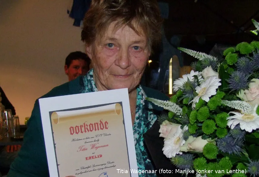Tijdens de ledenvergadering van Dindoa is Titia Wagenaar tot ere-lid benoemd van de korfbalvereniging vanwege haar 50-jarig lidmaatschap.