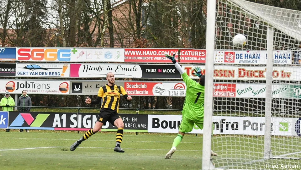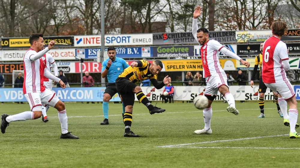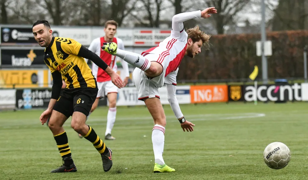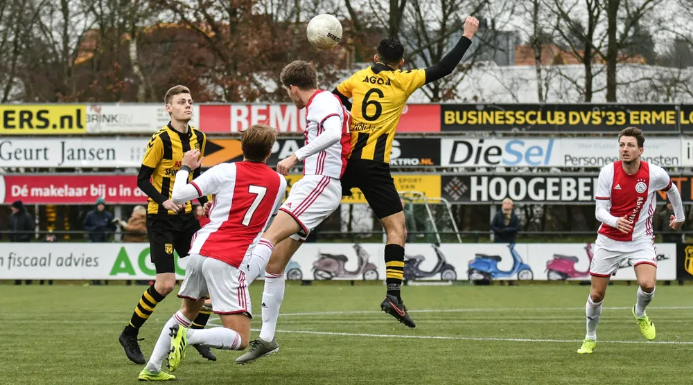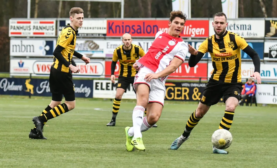 DVS’33 Ermelo heeft zaterdag 25 januari de thuiswedstrijd tegen de amateurs van Ajax met 3-2 gewonnen. De beslissende treffer werd diep in de extra tijd gescoord door Olivier Pilon. De Ermelose derde divisionist blijft met 38 punten uit 18 duels staan op de tweede plaats van de ranglijst. Koploper Sparta Nijkerk speelde thuis met 3-3 gelijk tegen Stedoco, waardoor de voorsprong op DVS slonk tot acht punten. Odin’59 steeg naar de derde plaats door de uitwedstrijd tegen DOVO met 0-4 te winnen.