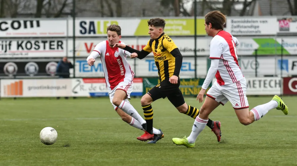 Beide ploegen zochten in de beginfase de aanval zonder tot kansen te komen. In de 13e minuut opende de thuisploeg de score Soufyan Moro bereikte vanaf links Joshua Patrick, die met een knappe kopbal de 1-0 binnen kopte. Nauwelijks een minuut later kreeg Jake Wolgarten op aangeven van Koen Blommestijn een vrije kans om gelijk te maken, maar de Ajax-aanvaller schoot hoog over.
