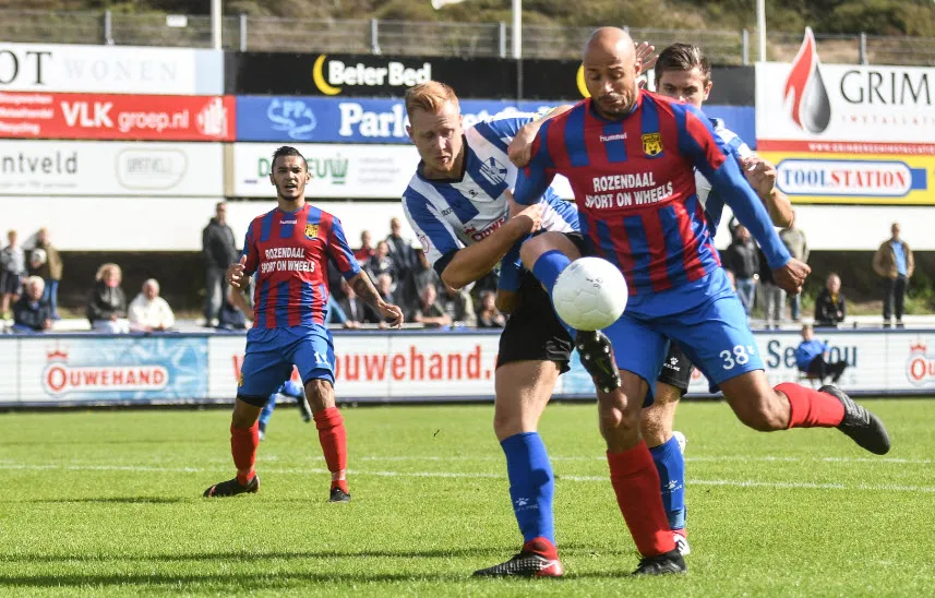 Eerst schoot Olivier Pilon in kansrijke positie hoog over en 3 minuten voor rust ging de bal op de stip, nadat Daniël van Warven onderuit gehaald was door Kenny Anderson. Bij de strafschop van Maurice de Ruiter belandde de bal via de keeper op de paal.
