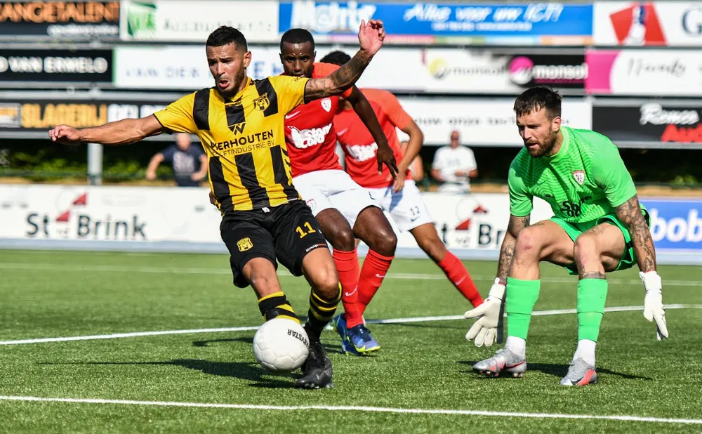 Aan de andere kant mocht in de 13e minuut de gevaarlijke spits Joshua Patrick na een uitstekende steekpass alleen afgaan op doelman Daan Huiskamp, die zijn doel goed verkleinde, waarna de oud-DVS’er de bal voorlangs het doel schoot.