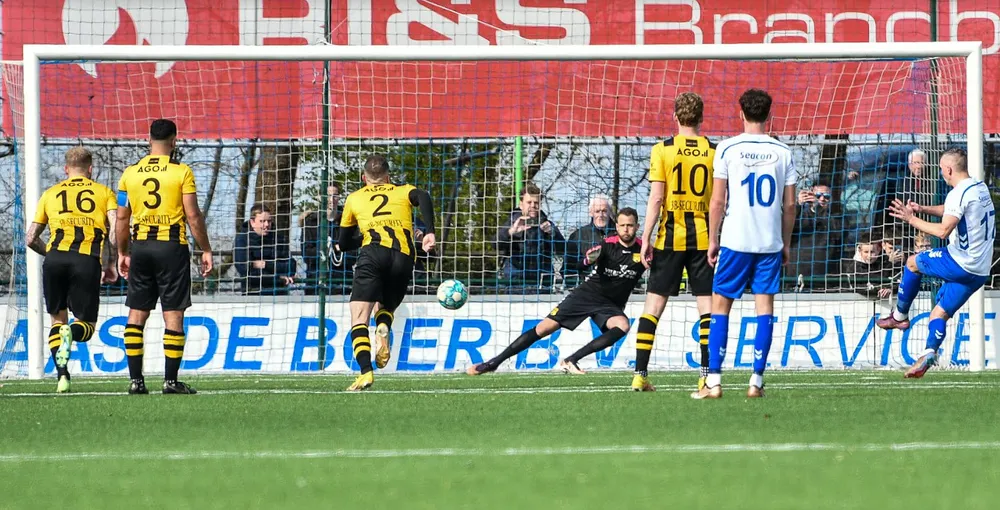 Het werd nog erger voor de Ermelose ploeg, toen de scheidsrechter vijf minuten later een strafschop gaf aan de thuisploeg, omdat Lucas Tol op de rand van het strafschopgebied licht getoucheerd werd. Riekelt Jan Brandt pakte het cadeautje dankbaar uit door vanaf elf meter de 1-0 te scoren. DVS’33 Ermelo liet zich echter niet van de wijs brengen en ging energiek op jacht naar de gelijkmaker. In de 76e minuut belandde een vrije trap van Stef Nijland tussen de handen van de keeper door op de lat en drie minuten later dook invaller Ali Akla vrij op voor het Urker doel, maar schoot de bal net naast.