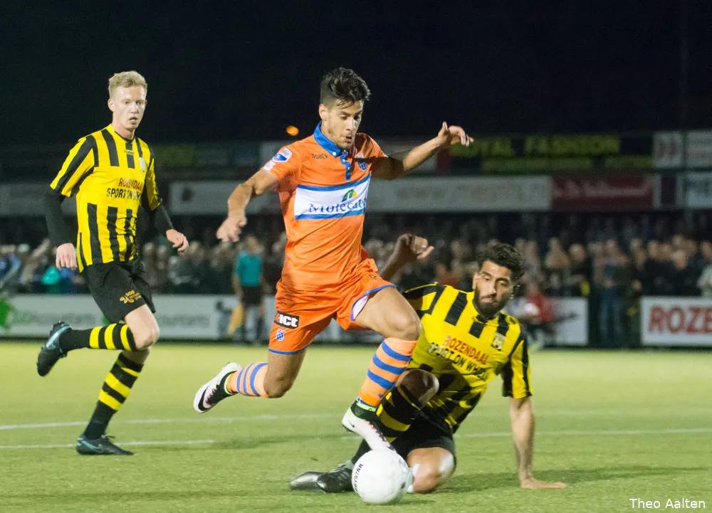 Een minuut later was het aan de andere kant wel raak.Basil Cameara ging in de fout, waarna Nicolai Brock-Madsen eenvoudig 0-1 kon scoren. Ondanks de vroege tegengoal bleef DVS goed partij bieden en kreeg enkele kansen.