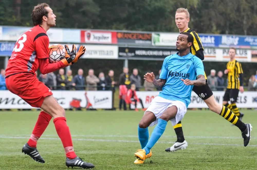 Na ruim een half uur spelen scoorde RVVHvanuit het niets de 1-1 gelijkmaker. Rensy Barradas schoot na een individuele actie op goed geluk richting het ‘vijandelijke’ doel en zag de bal buiten bereik van DVS-doelman Paul Eppink net langs de paal in het doel verdwijnen: 1-1.