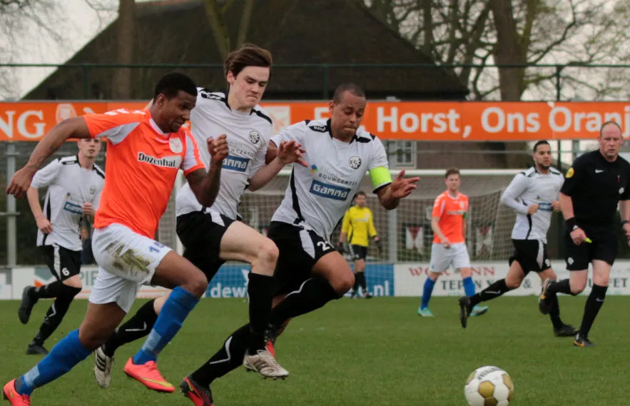 FC Horst heeft zich zaterdag 1 april met een 5-2 overwinning gerevancheerd voor de 2-1 nederlaag die het eerder dit seizoen leed tegen dorpsgenoot EFC’58. De Ermelose derdeklasser is gestegen naar de vijfde plaats met 31 punten uit 20 duels en is nog in de race voor de nacompetitie. EFC’58 blijft staan op de laatste plaats van de ranglijst met 16 punten uit 20 duels en zal nog vol aan de bak moeten om degradatie te voorkomen.