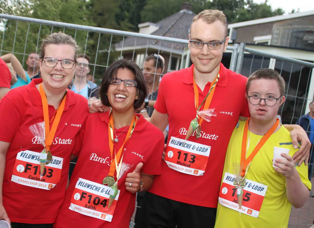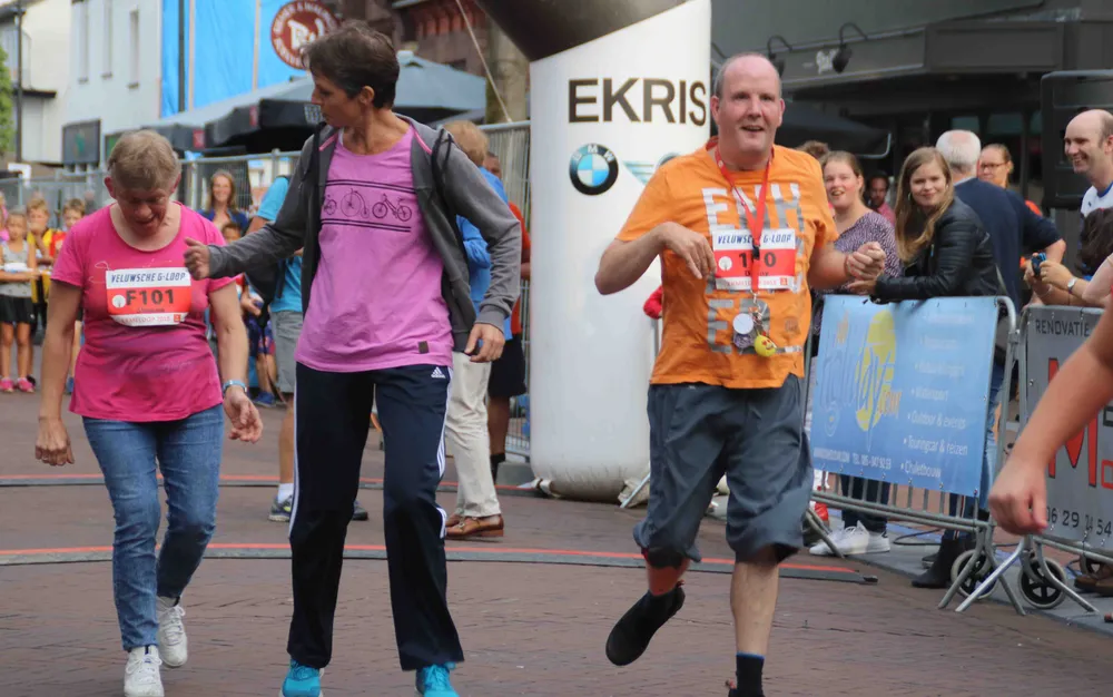 Vanavond, zaterdag 18 augustus, denderde de eerste Ermeloop door het centrum van Ermelo en de naastliggende wijken. De Veluwsche G-Lopers die de Ermeloop aftrapten even na zessen, voelden zich dé kampioenen van de Ermeloop.
