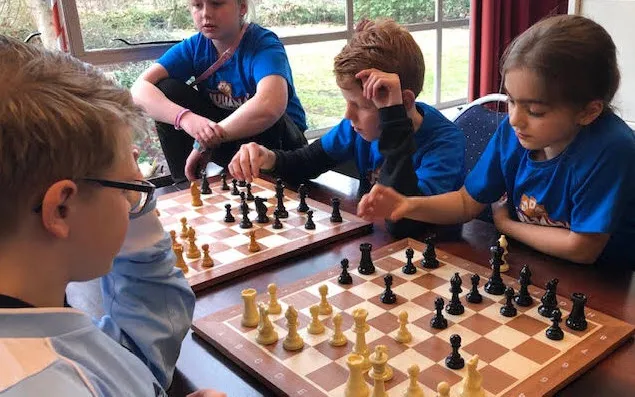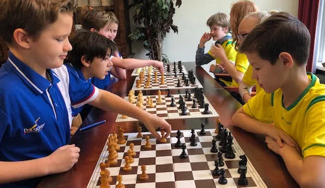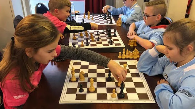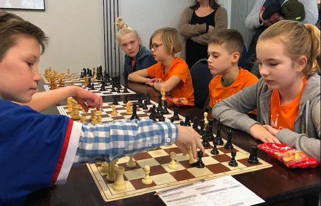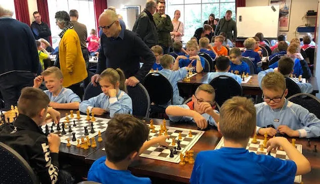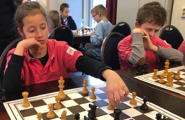 Daarna kon het echte werk beginnen. In poule 1 schaakten 16 teams met leerlingen uit groep 7 en 8 en poule 2 bestond uit 14 teams met leerlingen uit groep 5 en 6. Meerdere basisscholen hadden hun schakers vooraf goed getraind met behulp van ouders, grootouders of vrijwilligers van het Veluws Schaakgenootschap Ermelo (VSG). Er werden in beide poules zes rondes geschaakt. De veertien vrijwilligers van VSG zorgden ervoor, dat de teams op de juiste plaatsen gingen zitten, keken toe op een ordelijk verloop en brachten de uitslagenbriefjes naar het wedstrijdsecretariaat.