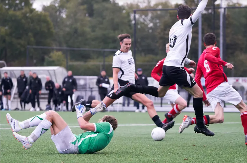 Een ongelukkige handsbal van jongeling Jarik Veerman, die uitstekende inviel voor Achraf Agarmaoine, leidde tot een makkelijk gegeven penalty die werd benut: 1-1. Er volgden een aantal corners van Hoevelaken en aan de andere kant belandde een lange bal van Kevin Schuur bij Jorick Priem die de te ver voor zijn doel staande keeper probeert de verrassen, maar zijn inzet was net te kort.