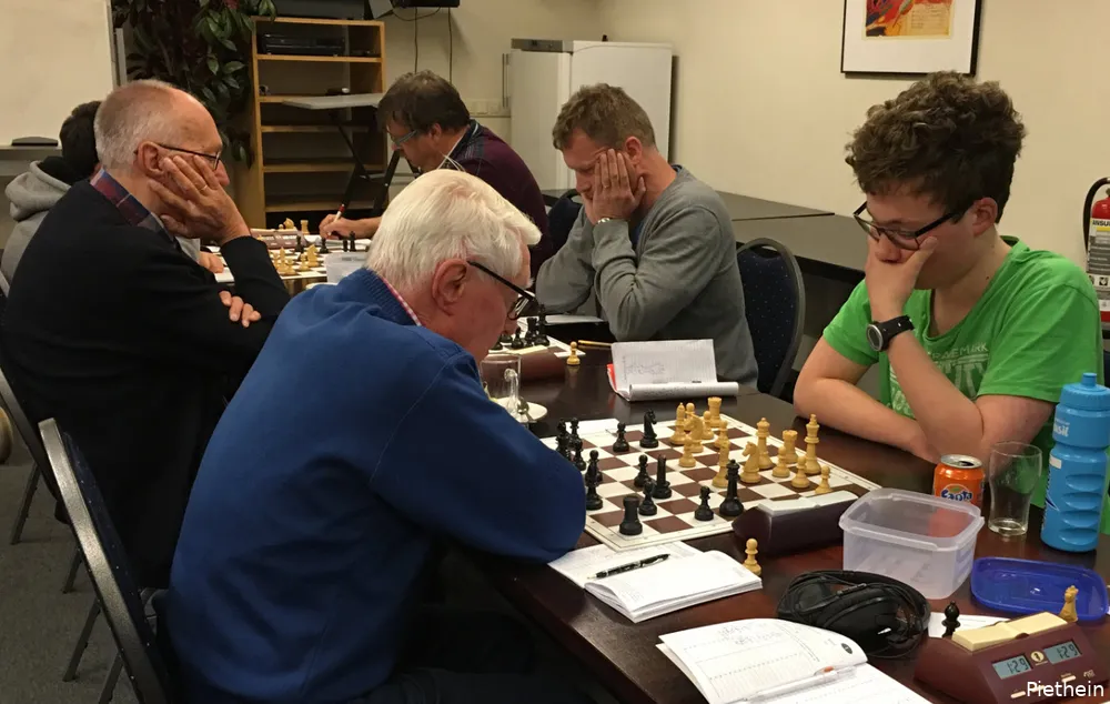 Jeugdspeler Onno Wolters was de koning te rijkmet zijn remise tegen routenier Jan Lambrechts. Bas West en Wim Jongejan kwamen een puntendeling overeen. Door ziekte moet er nog één partij gespeeld worden in de kampioensgroep. Hier is Sape Westra favoriet. Rogier van Dijk won van Marco ter Meer en Cor Petersen versloeg Dirk van Setten.