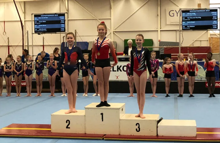 Op vloer lieten Merijn en Aimee een nette oefening zien en Saffirah turnde voor het eerst een losse radslag in haar oefening. Sanne verbeterde zichzelf op sprong met half in, half uit. In totaal is Sanne 3e geworden en kreeg de bronzen medaille, Saffirah 11e, Merijn 9e en Aimee 6e.