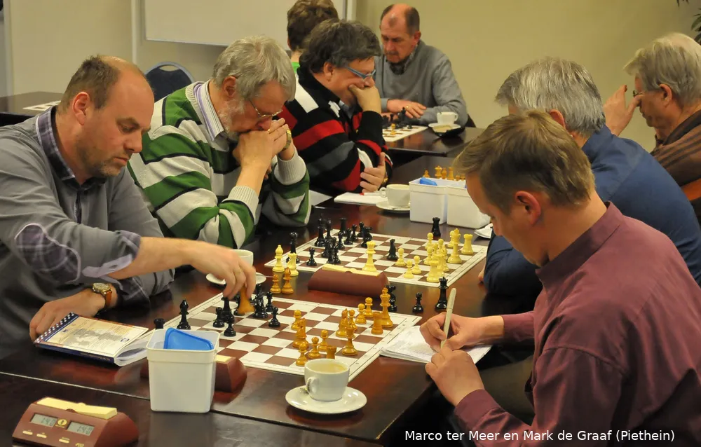 De enige partij die deze week werd gespeeld in de Kampioensgroep van het Veluws Schaakgenootschap Ermelo leverde na een lange avond een overwinning op Rogier Dijk tegen Dirk van Setten.