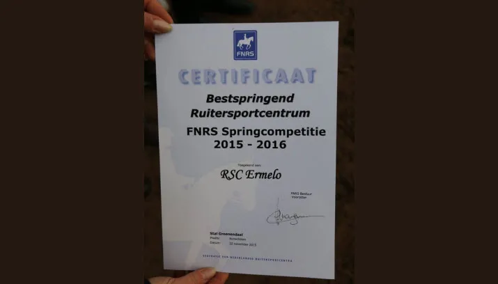 Ruitersportcentrum Ermelo aan de Buitenbrinkweg 44a in Ermelo heeft het vandaag, zondag 22 november, opnieuw geschopt tot Best springende manege van de regio . Dit jubelt eigenaar Monique Gommans-De Warle.