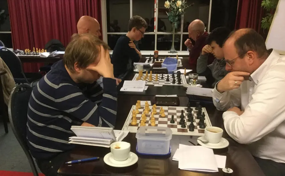 Shakverdian won ook nog twee pionnen en laat op de avond vergiste Westra zich, verloor daardoor direct nog twee pionnen en gaf daarom op. Lambrechts en Keijer speelden remise, evenals Geitenbeek en Van Setten. Geitenbeek leek door een torenoffer een beslissende aanval te krijgen, maar het liep met een sisser af.