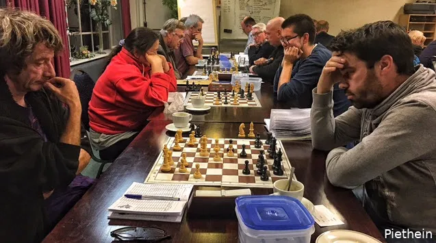 Geitenbeek kon het niet redden tegen De Hoop. Piet Hein Bleeker speelde een prima partij tegen Westra. Van der Priem deed het uitstekend tegen Licher met een remise. Met veel moeite kon Westra een aanval realiseren op de basis van de pionnenketen en Bleeker, die manmoedig stand hield, moest toch het hoofd buigen. Wattez zag een aftrekaanval van Van de Burg over het hoofd, die hem de Dame kostte. Paulus bood remise aan tegen Askarzada, die hem niet goed verstond en doorspeelde. Na vier zetten bracht iemand Askarzada voor de zekerheid van dit aanbod op de hoogte. Hij ging alsnog direct akkoord. Johan Scheerboom won van W. Miedema en had een zichtbaar goed humeur daardoor. Zijn pessimisme ten aanzien van eigen kunnen was verdwenen. Bieringa blunderde in de opening waar Ferwerda uiteraard gebruik van maakte. Bieringa kon daarna niet meer terugkomen en verloor.