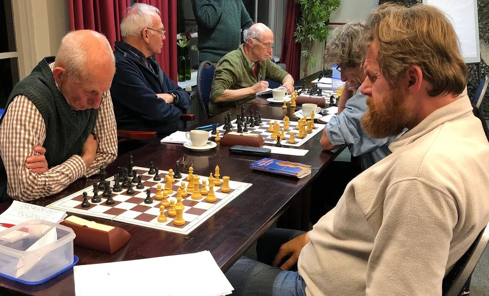 Op de laatste speelavond van het kalenderjaar 2018, dinsdag 18 december, werd de dertiende ronde van de interne competitie bij het Veluws Schaakgenootschap Ermelo (VSG) gespeeld. Het vuurwerk was bescheiden, maar de sfeer zoals gebruikelijk uitstekend.