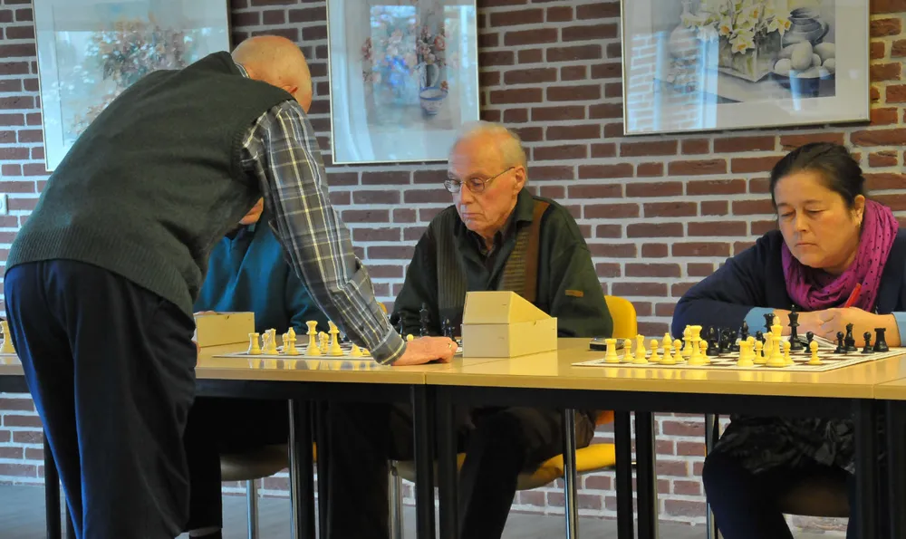De schaakgroep die elke woensdagmiddag van 2 tot 4 schaakt in de Baanveger aan de IJsbaanweg 45 nam het afgelopen week op tegen Cor Petersen tijdens het Schaaksimultaan.