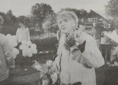 Bijschrift foto 2: Een 92-jarige bewoonster van ‘De Dillenburg’ liep de drie kilometerroute van de Avondvierdaagse volledig uit. (Archieffoto: Arda Konings)