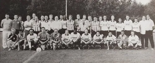 Door Bram Burggraaff. Bijschrift foto 1: Bert van Hunenstijn maakt bij EFC’58 zijn debuut als hoofdtrainer. (Eigen archieffoto). Bijschrift foto 2: De selectie van EFC’58 in 2005 na de wedstrijd tegen PSV.
