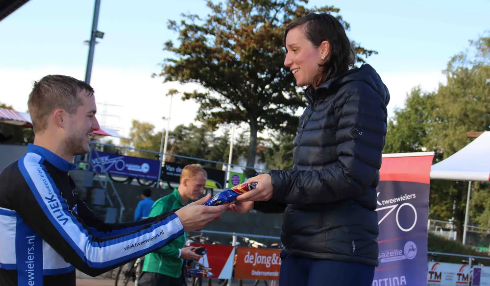 Vooral opnieuw de schoenen verwisselen voor de laatste 2,5 km hardlopen viel de 110 deelnemers niet altijd mee. "Dat was echt zwaar", pufte deelnemer Berend Vliek, van Vliek Tweewielers, de hoofdsponsor van de RunBikeRun. "Je komt dan net van de fiets af en je benen zitten helemaal vol." Niettemin was Berend tevreden met de tijd die hij neerzette: 57:26. "Het kan ermee door, ik liet in ieder geval de beste vrouw achter me."