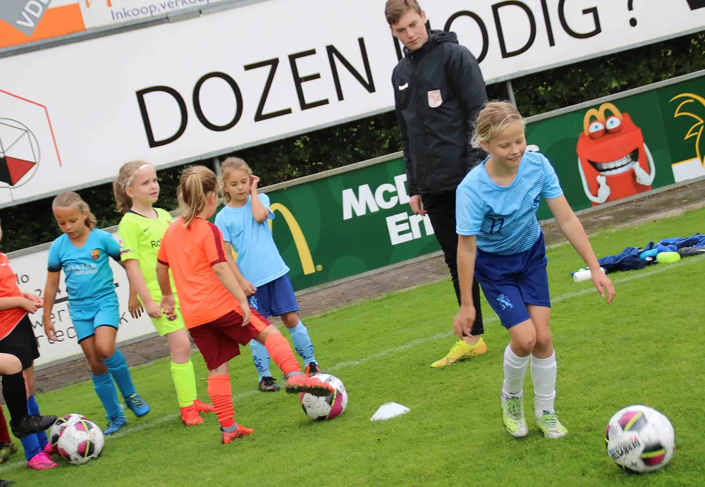 "Met deze voetbalclinic oefenen de jeugdleden vooral de basis van de techniektraining", vertelde Tineke van den Hazel, organisator van het evenement en voorzitter Dames/Meiden-bestuur. "Kortweg samengevat; 'Wat ga jij doen als er een bal aankomt'."