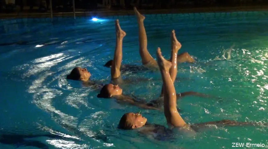De eindshow van de afdeling Synchroonzwemmen van de Ermelose zwemvereniging Zon en Water in zwembad Calluna werd zaterdag 1 juli bezocht door meer dan 200 enthousiaste bezoekers.