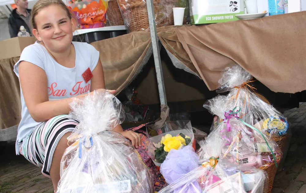 Femke de Jong had een geluksdag. Bij het rad van fortuin won ze maar liefst 7 manden die rijk gevuld waren met allerlei hebbedingetjes. Gelukkig wist ze een goede bestemming voor haar prijzen. "Ik heb 4 zussen en 5 broers, dus dat komt wel goed."