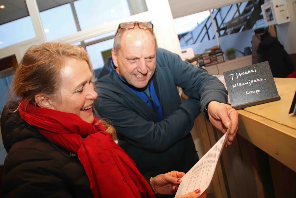 Janette Bruining van BouwSports en mede-organisator van de nieuwjaarsloop lichtte toe: "In eigen groepjes vertrekken met de routebeschrijving van de wandeling is toen zo goed bevallen, dat we er ook deze editie van de Nieuwjaarsloop voor hebben gekozen." Wandelaars konden vanochtend tussen half 9 en half 10 starten in plaats van met zijn allen om 9 uur. Wat meteen ook een handreiking was naar de vroege vogels en deelnemers die wat langer wilden uitslapen.