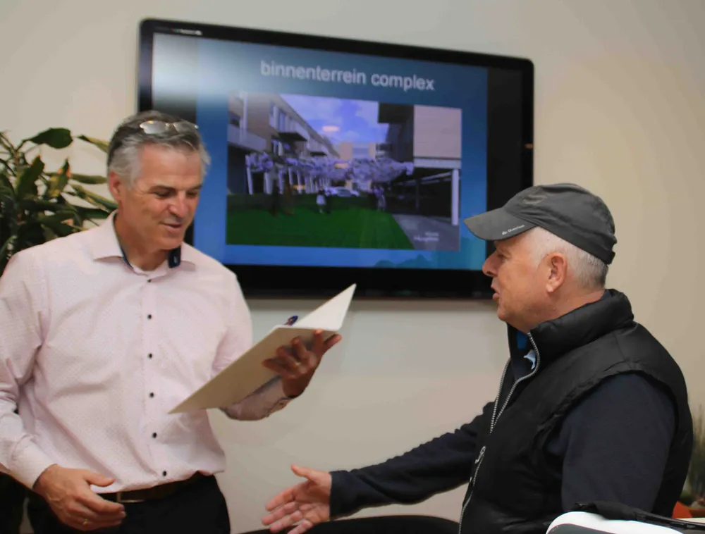 Het vitale echtpaar dat tegen de 80 loopt, kreeg eerst de mogelijkheid tot een rondleiding door de virtual reality bril. Zij verbaasden zich over het levensechte beeld wat zij kregen van de verschillende appartementen. "Het is de eerste keer dat we ons oriënteren op een nieuw onderkomen. Nu wonen we nog in een vrijstaand huis met een tuin. Maar we beseffen ook dat we rekening moeten houden met onze leeftijd, en dat de situatie zo kan veranderen."