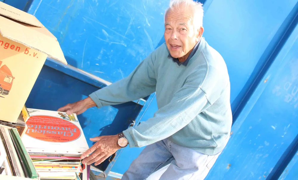Alfred is van de meubelverkoop. "We hebben weer een mooi vrachtje meubelen in de aanbieding. Een beetje richting antiek en beslist niet alledaags, echt apart spul. Maar nu ga ik kijken of er koffie is", neemt Alfred een 'break'. Want hij is al vanaf half acht vanochtend in touw.
