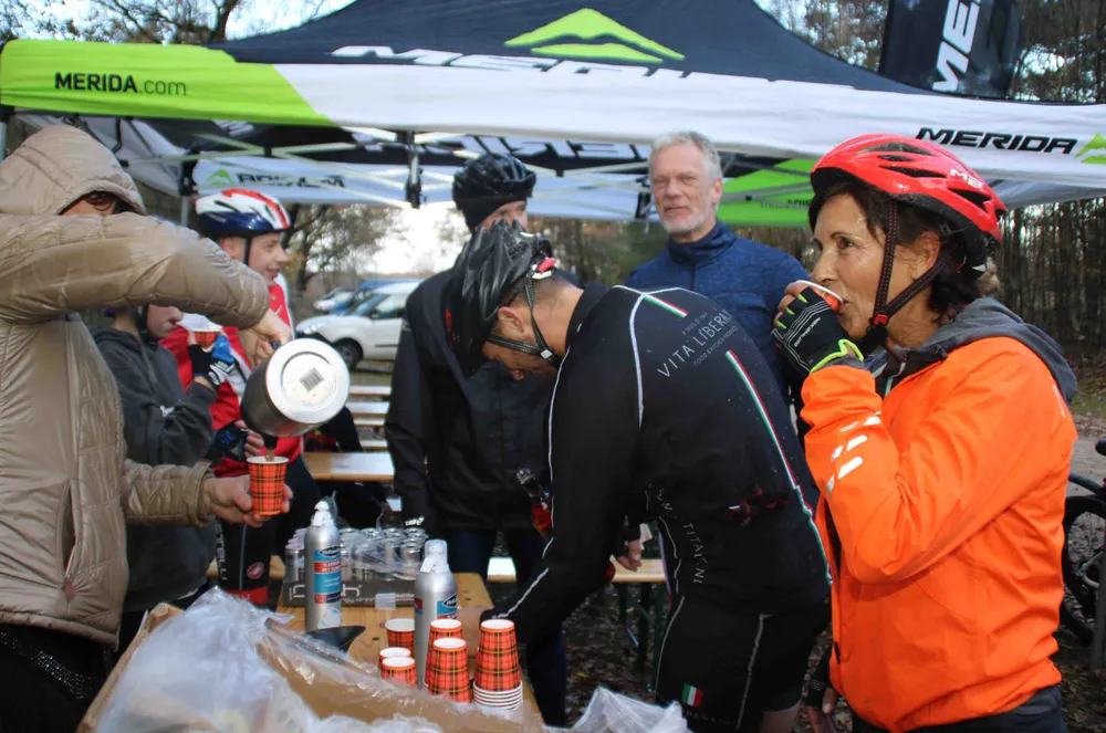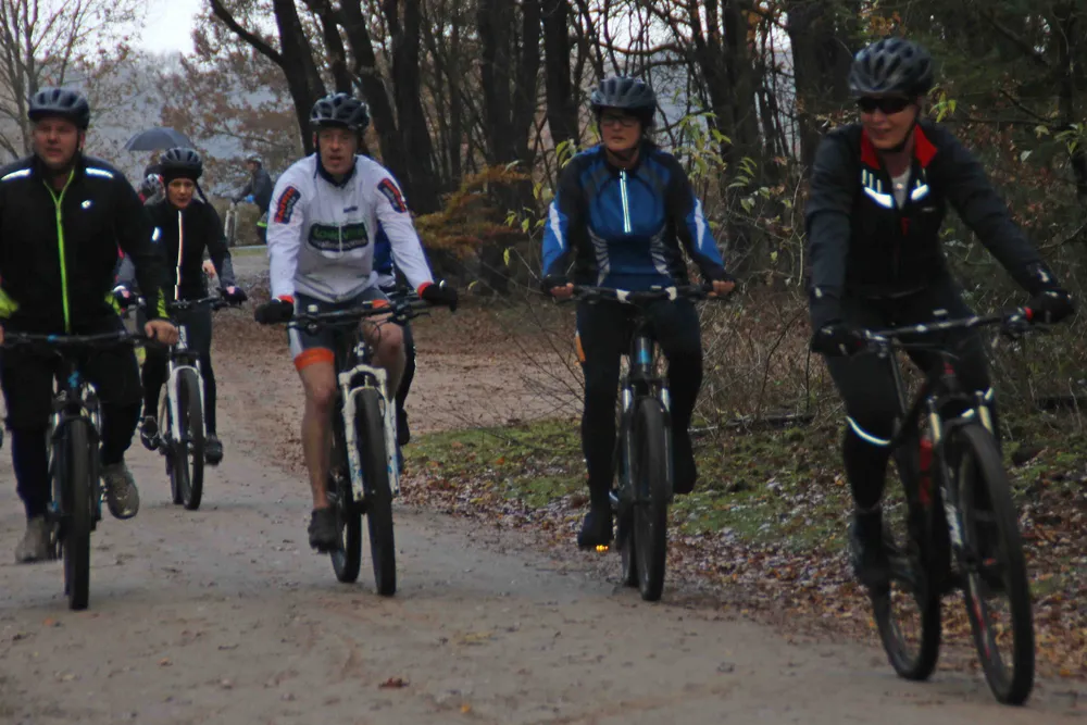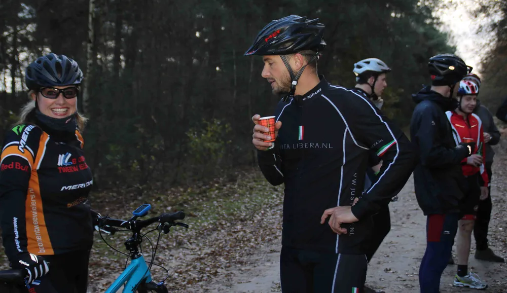 "Rond tien uur vanmorgen meldden de eerste 6 deelnemers zich al voor de koffie", vervolgde Gert. Waar wandelaars de kou en regen trotseerden op de Ermelose heide, en blij waren wanneer de zon doorbrak, noemde Gert een dergelijke herfstige dag ideaal MTB-weer. "Lekker door de blubber en bossen jakkeren; dit is echt heerlijk fietsen voor de MTB-ers. Wegwielrennen is mooi voor in de zomer. Een MTB-tocht echter in de herfst maakt de fietsomstandigheden net wat zwaarder. Je zal zo wel zien, ze komen allemaal onder de modder binnen."