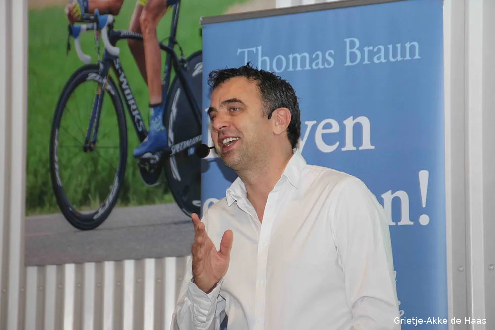 Het project 'Ga Toch Fietsen' van BouwSports is namelijk bedoeld voor deelnemers die nog nooit een berg hebben beklommen. Ofwel beginnende of recreatieve fietsers die houden van een sportieve uitdaging. Met een trainingsprogramma van een half jaar verzekeren organisatoren Wim en Marleen Bouw en Janet Bruining, is het haalbaar de Mont Ventoux eind september te beklimmen. "Hierbij is het niet belangrijk dat je de ander overwint, maar jezelf. Ook geslacht en leeftijd zijn niet belangrijk, wel het samen trainen voor een gezamenlijk doel." En wie wist dat beter te onderstrepen dan Thomas Braun?!
