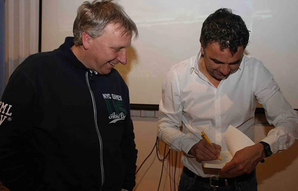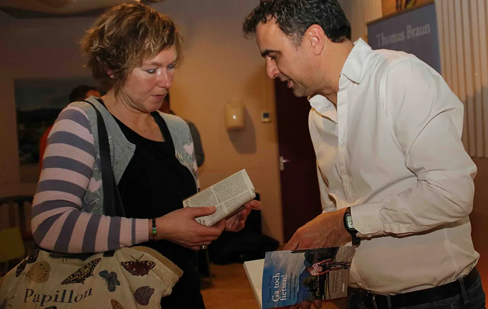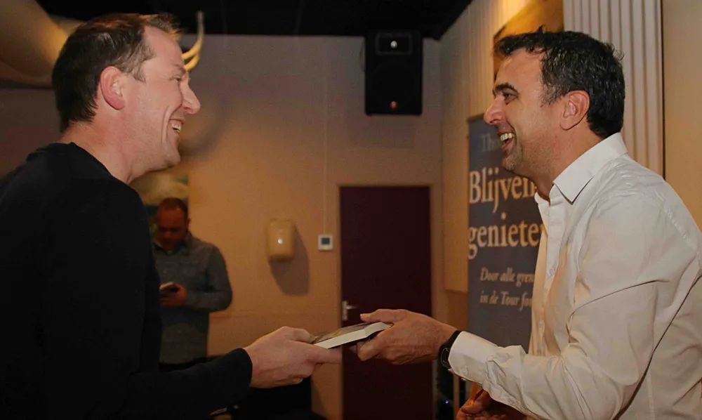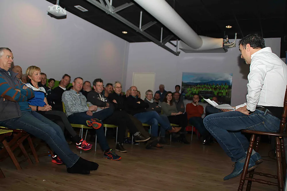 De sportzaal van BouwSports Ermelo aan de Kerkdennen 40a, waar normaal wordt gezweet op de spinningfietsen, zat bomvol gisteravond, vrijdag 20 januari. De mannen én vrouwen lieten zich inspireren door journalist Thomas Braun, de auteur van het boek 'Ga toch fietsen'. De lezing vormde de opmaat naar een gelijknamig project van BouwSports: het beklimmen van de Mont Ventoux.
