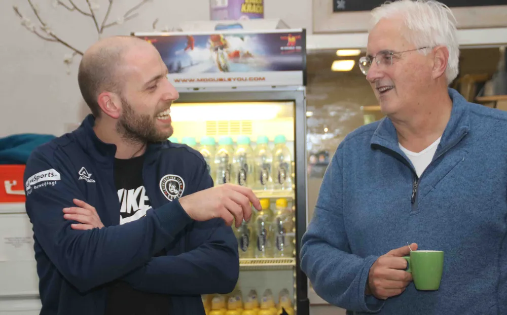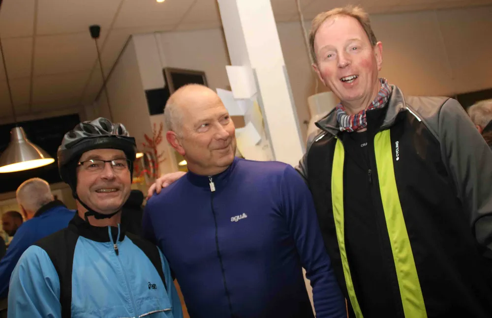 De deelnemers hielden het vooralsnog bij een kop koffie, met in hun achterhoofd de borrel die halverwege de wandeltocht van ongeveer 10 kilometer zou worden geschonken. Het groepje MTB-ers reed een andere route. "Maar", beloofde Wim, "we proberen wel tegelijkertijd terug te zijn voor de krentenwegge en warme chocomelk."