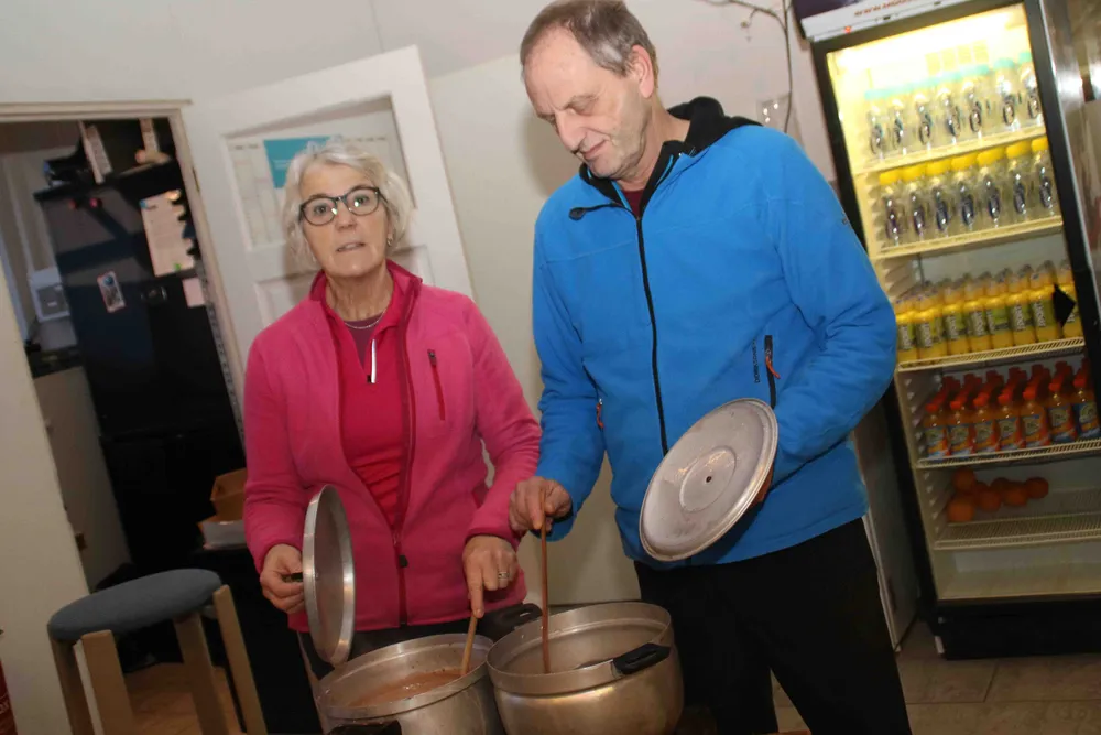 Tussen de klapzoenen door om elkaar voor aanvang van de tocht het allerbeste te wensen, werd hier en daar een neus opgetrokken en gesnuffeld. Hoewel geen onbekende geur viel die voor sommigen moeilijk te plaatsen gezien het tijdstip. Maar het pruttelde toch echt in de pannetjes, Glühwein die achter de balie werd 'gestookt'. "Wie wil", lachten eigenaren Willem en Marleen Bouw, "mag zich alvast opwarmen aan dit winterse drankje."