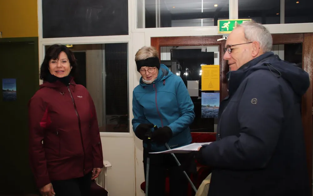 Ongeveer 60 deelnemers luidden vanochtend fris en actief het nieuwe jaar in. Eerst natuurlijk door elkaar het allerbeste te wensen voor 2025 en de laatste nieuwtjes met elkaar te delen. Zo nu en dan snoof iemand verlekkerd de geur op van de glühwein en de chocomelk die al genoeglijk pruttelden op het gasfornuis. Hartverwarmende dranken die de deelnemers bij terugkomst zouden verwelkomen. "De glühwein wordt bereid door Rob", vertelde Janette Bruining, "met toevoeging van de likeur Licor 43 Cuarenta Y Tres naar een recept van De Boterlap."