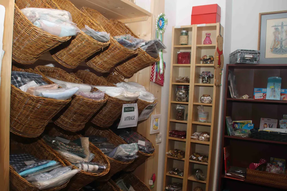 Marja die sinds bijna 3 jaar vrijwilliger is bij De Zaak van Ermelo, is één van de dames die actief is in het atelier. "Alles wat hier binnenkomt en maar een beetje creatief is komt bij mij in de doos." Zo onderwerpt ze de tweedehands kleding nauwlettend aan een onderzoek of deze schoon en heel is. Mankeert er iets aan, dan wordt dit in het atelier gerepareerd.