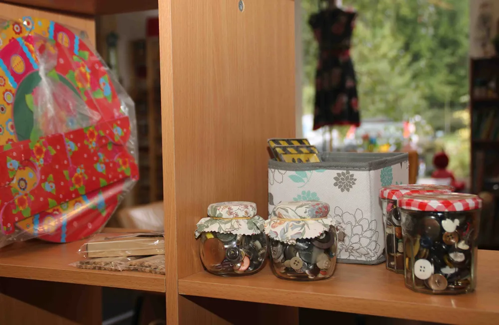 Vrijwilligers Marja, Marina, Marie, Ineke, Bep en Mary-Ann kunnen eigenlijk alles gebruiken om het assortiment van de Hobby-hoek in De Zaak van Ermelo op peil te houden.