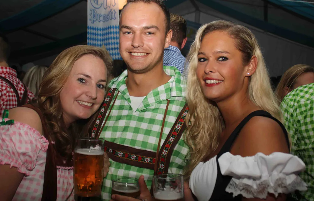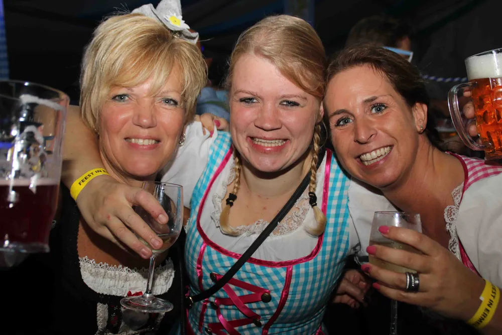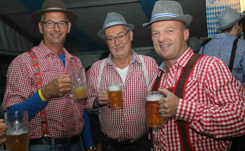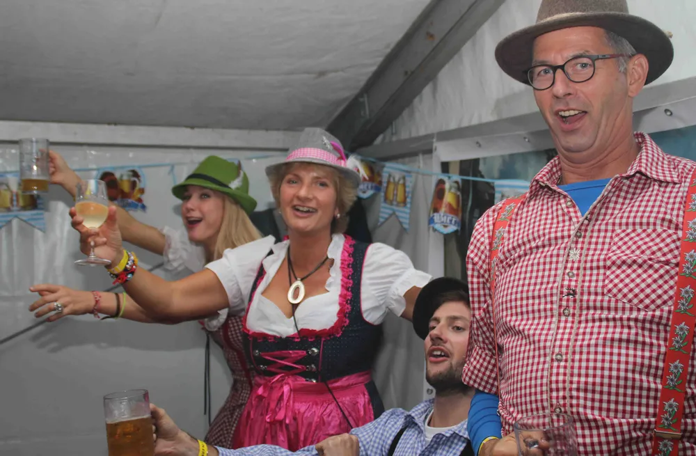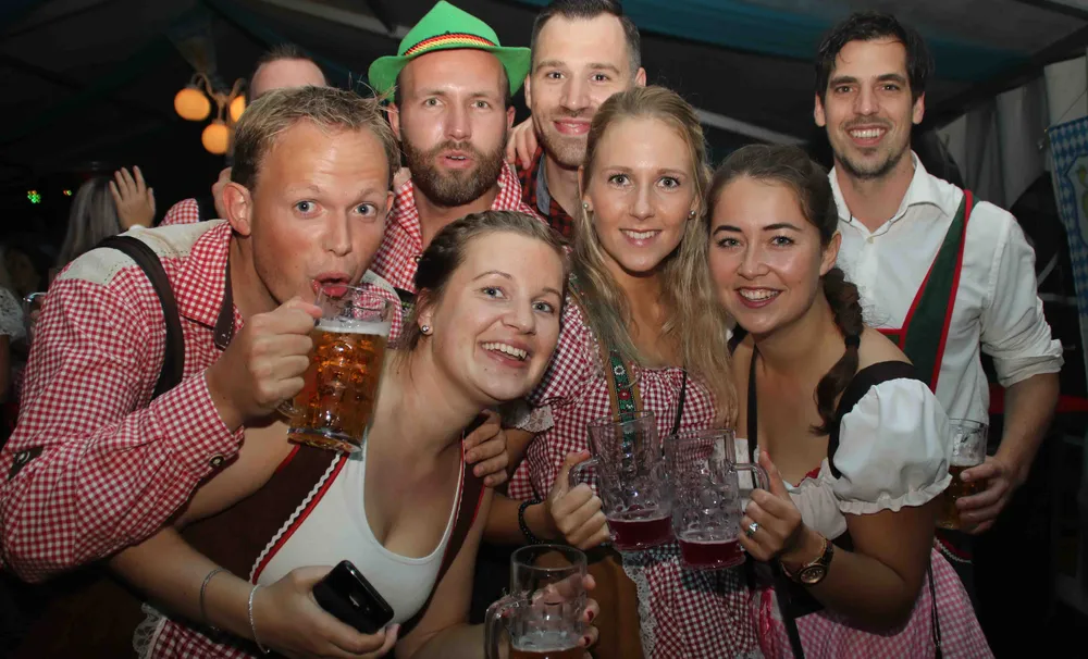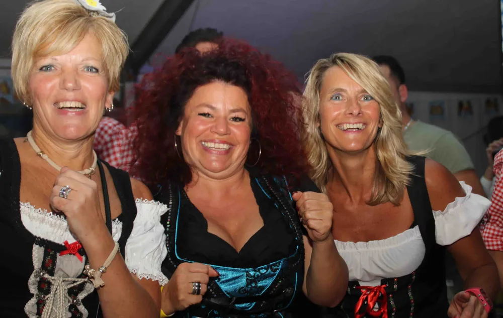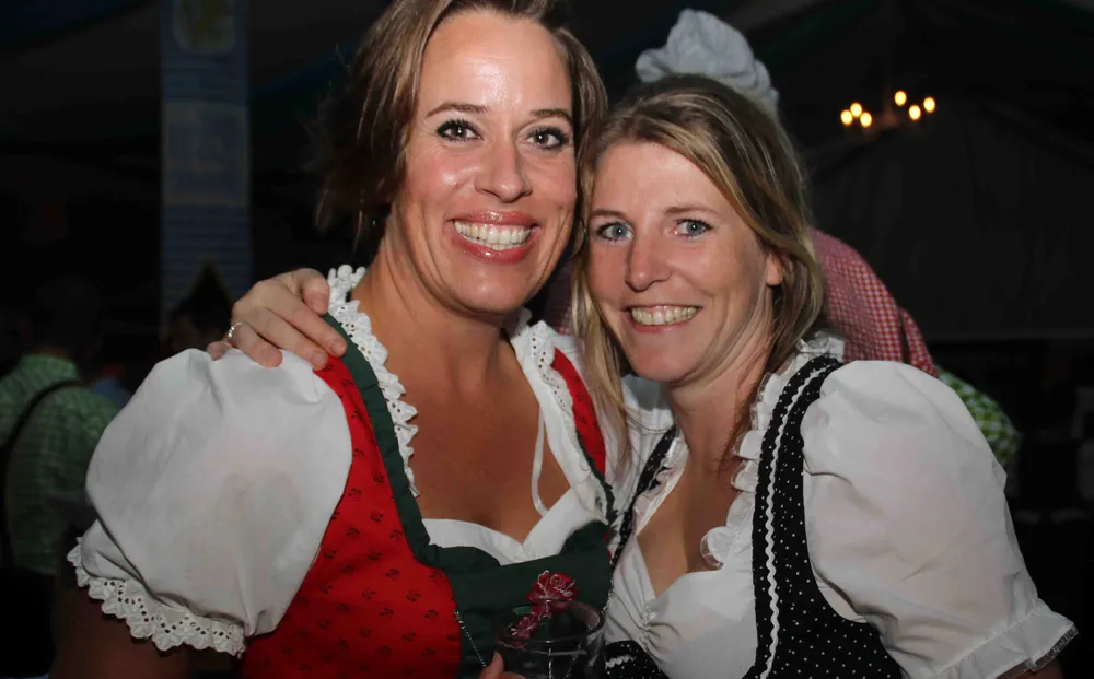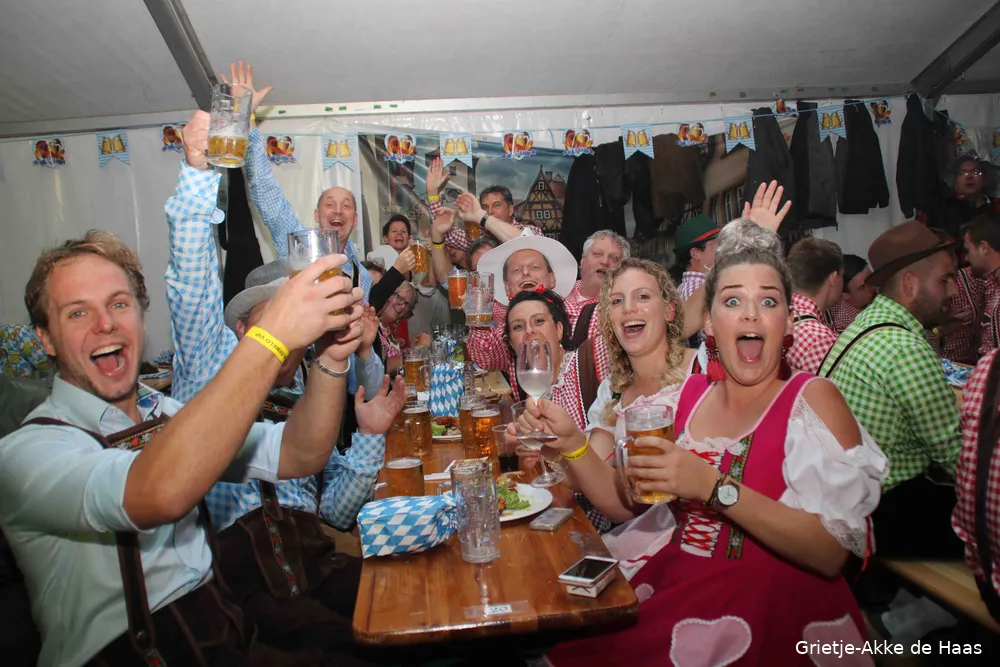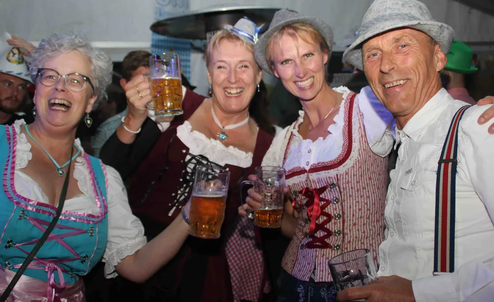 "Haha, wat denk jij dan", showde een struise dame haar fraaie in een Dirndl jurk gestoken boezem, "ik ben hier de hele avond aan het collecteren." En met haar het gros van de dames die zaterdagavond 30 september van de partij waren bij het Oktoberfeest op 't Weitje.