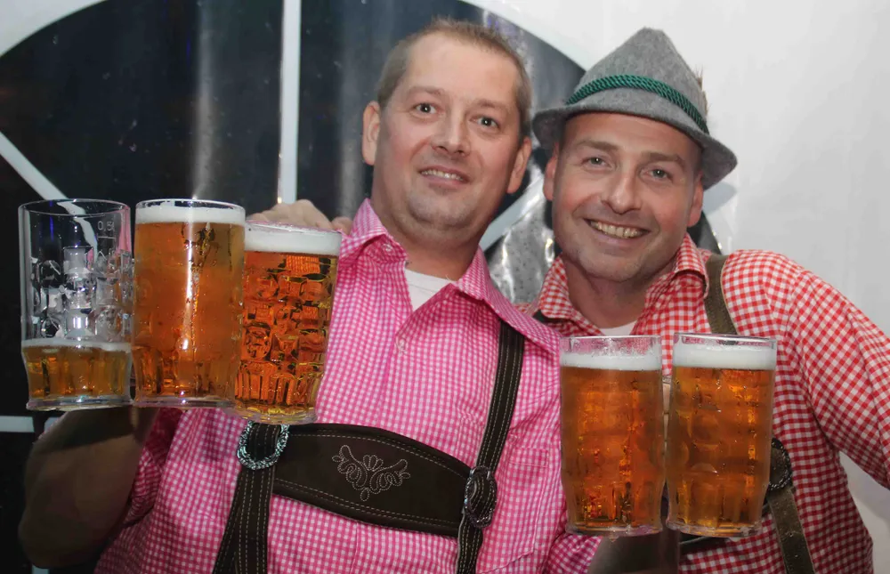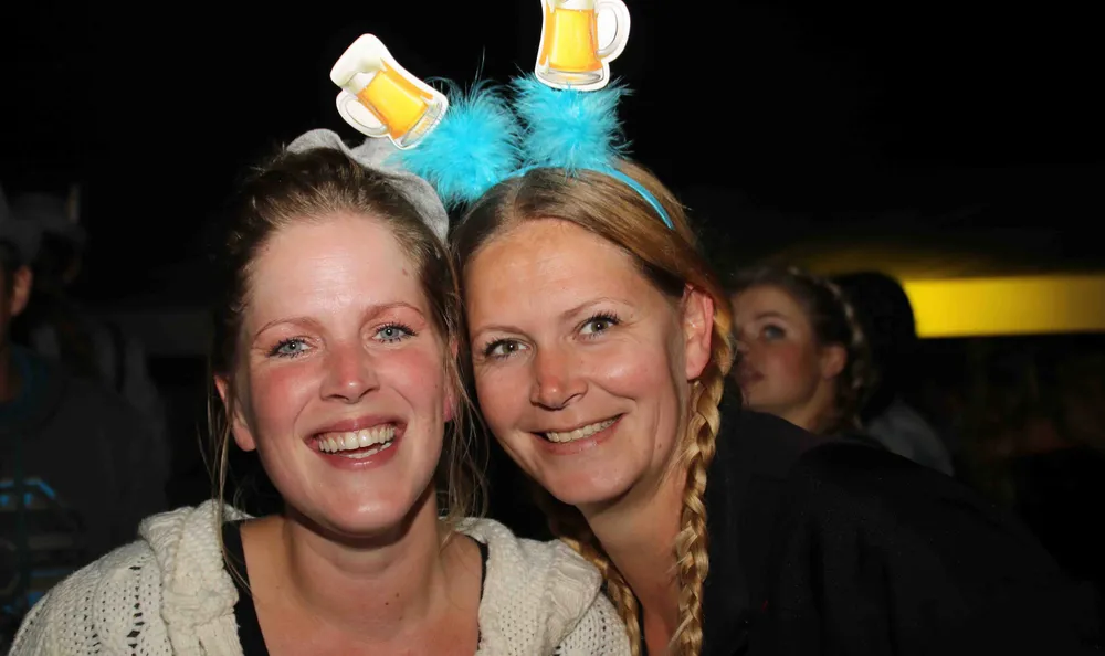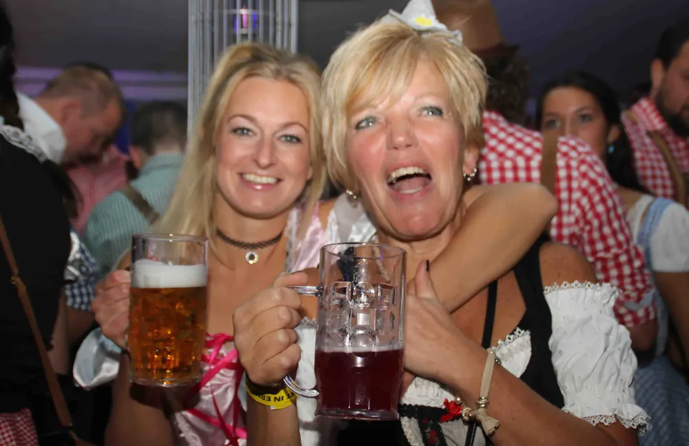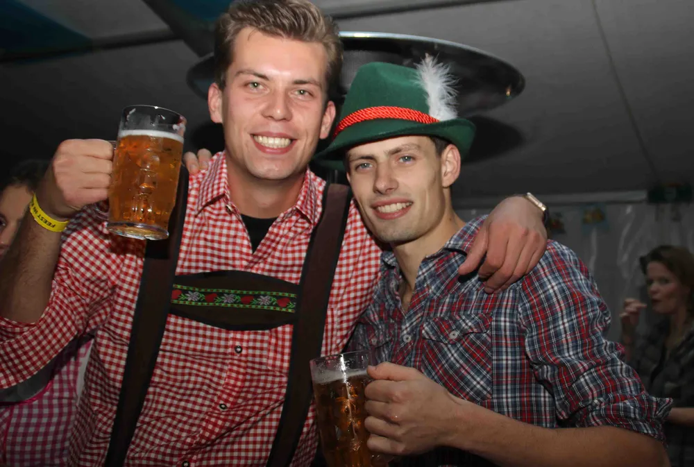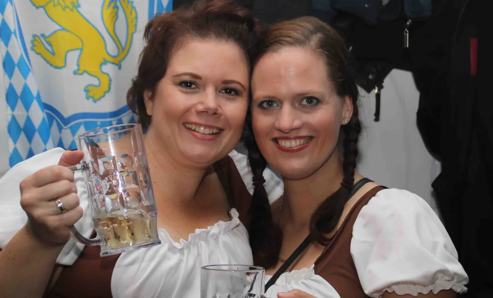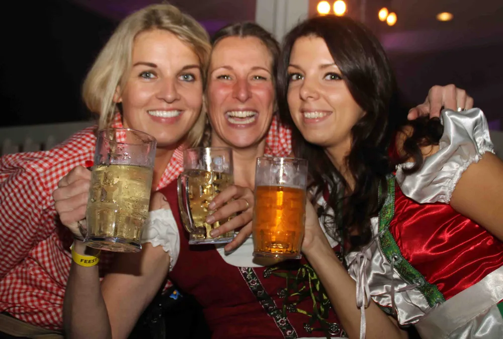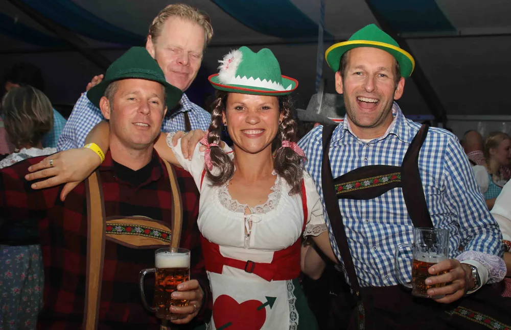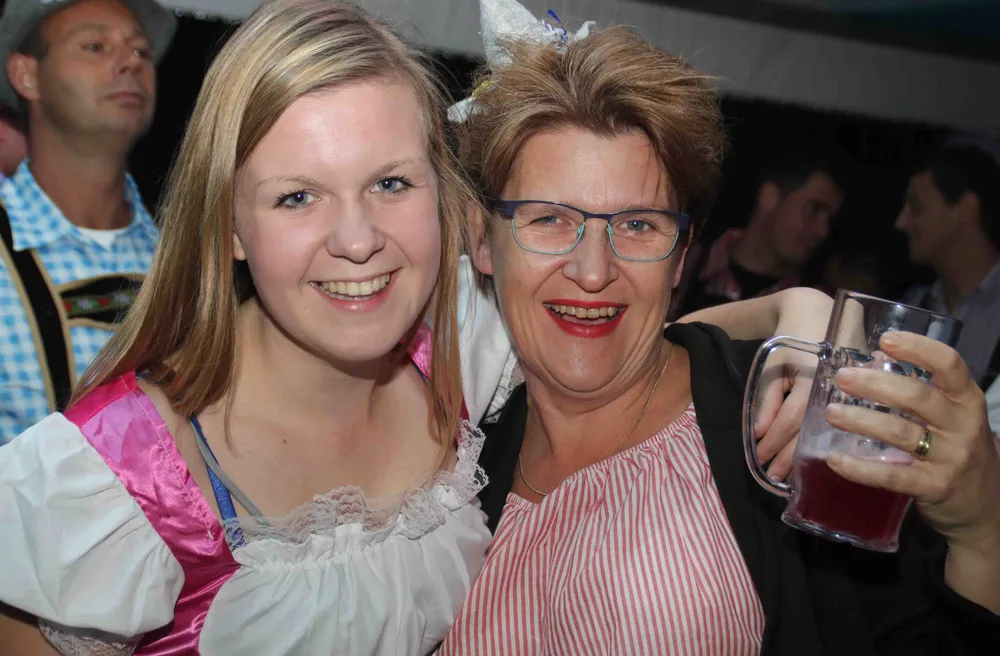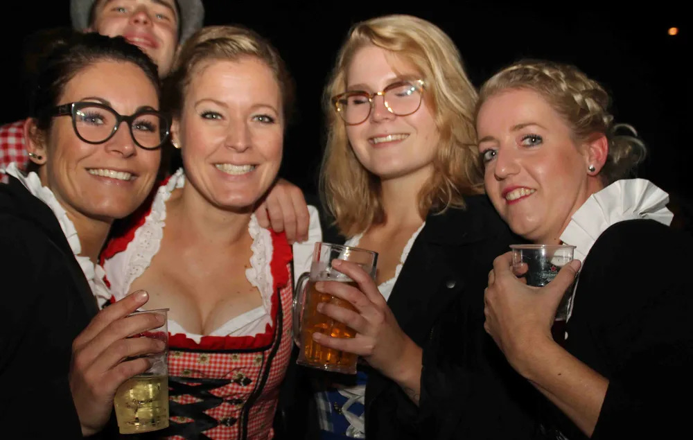 "Haha, wat denk jij dan", showde een struise dame haar fraaie in een Dirndl jurk gestoken boezem, "ik ben hier de hele avond aan het collecteren." En met haar het gros van de dames die zaterdagavond 30 september van de partij waren bij het Oktoberfeest op 't Weitje.