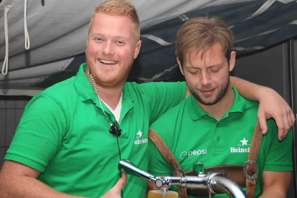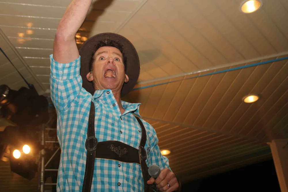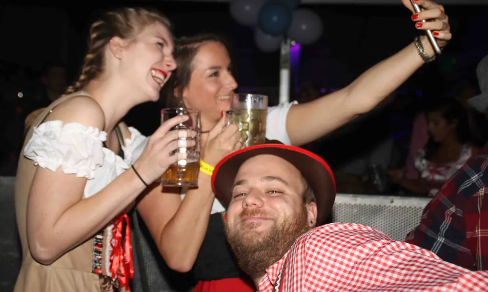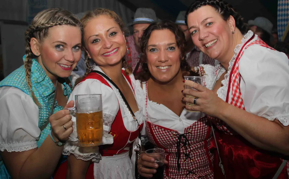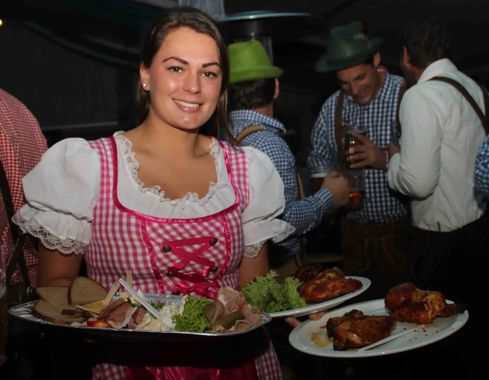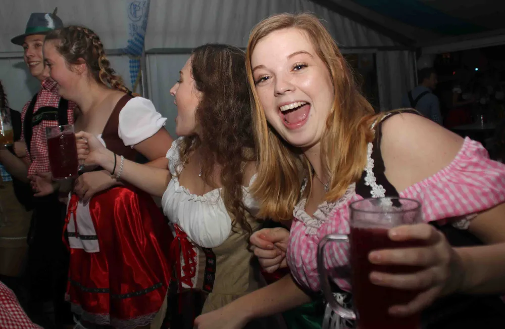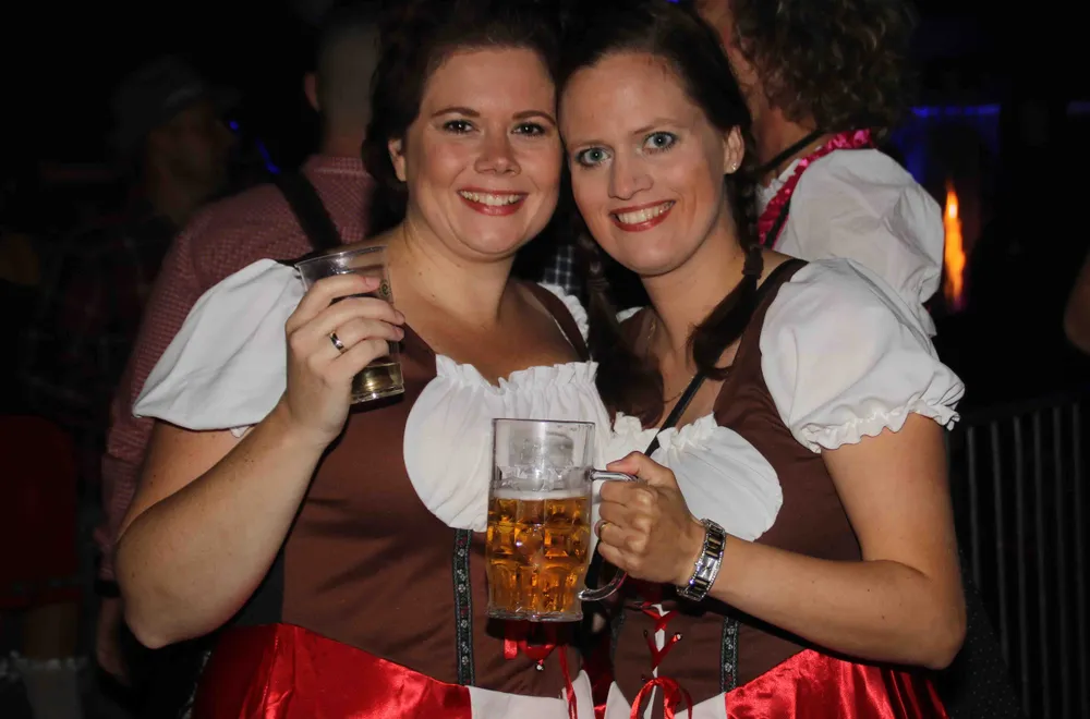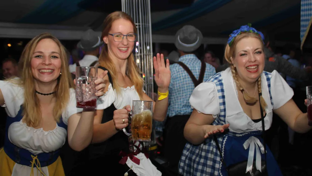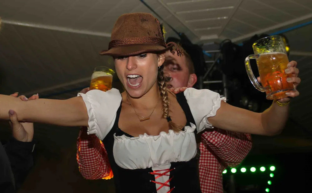 "Haha, wat denk jij dan", showde een struise dame haar fraaie in een Dirndl jurk gestoken boezem, "ik ben hier de hele avond aan het collecteren." En met haar het gros van de dames die zaterdagavond 30 september van de partij waren bij het Oktoberfeest op 't Weitje.