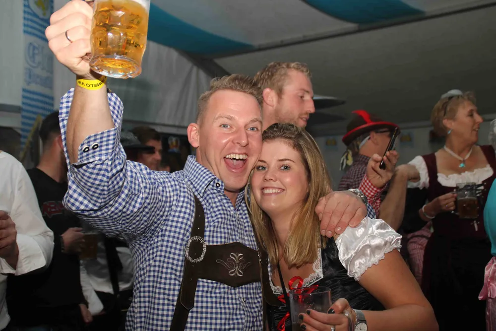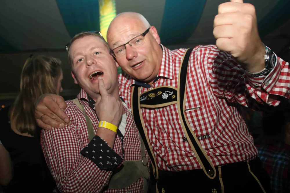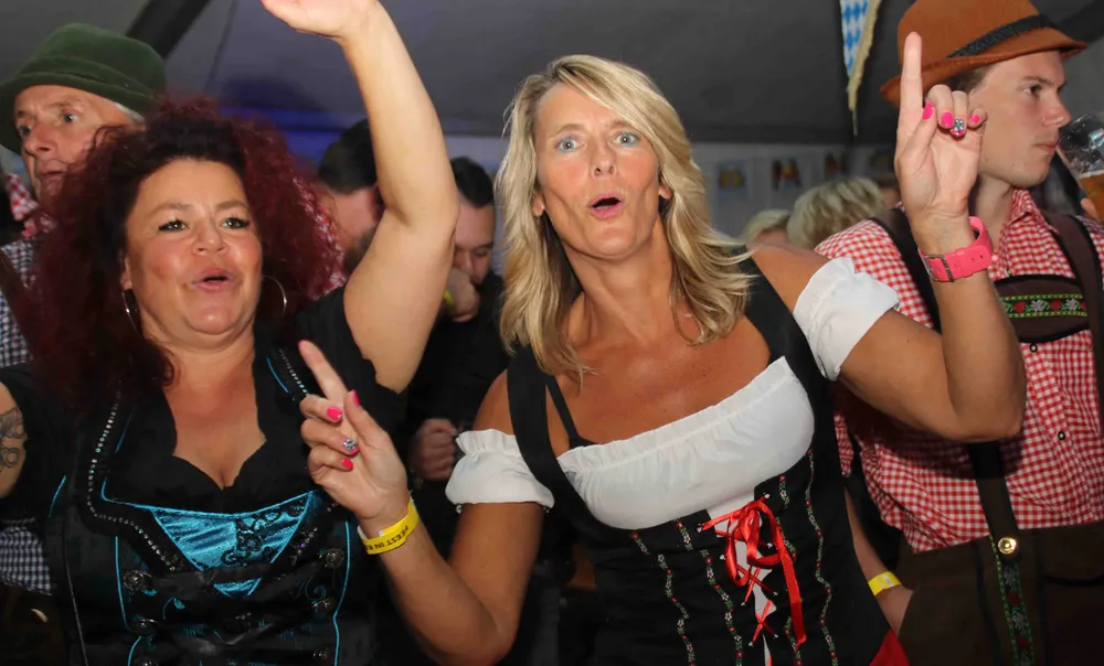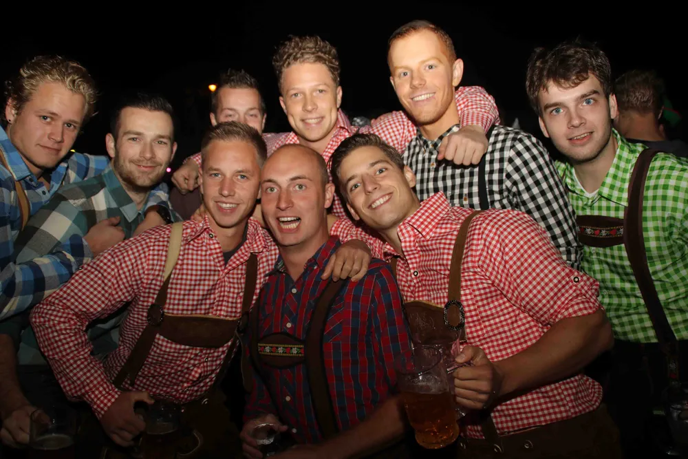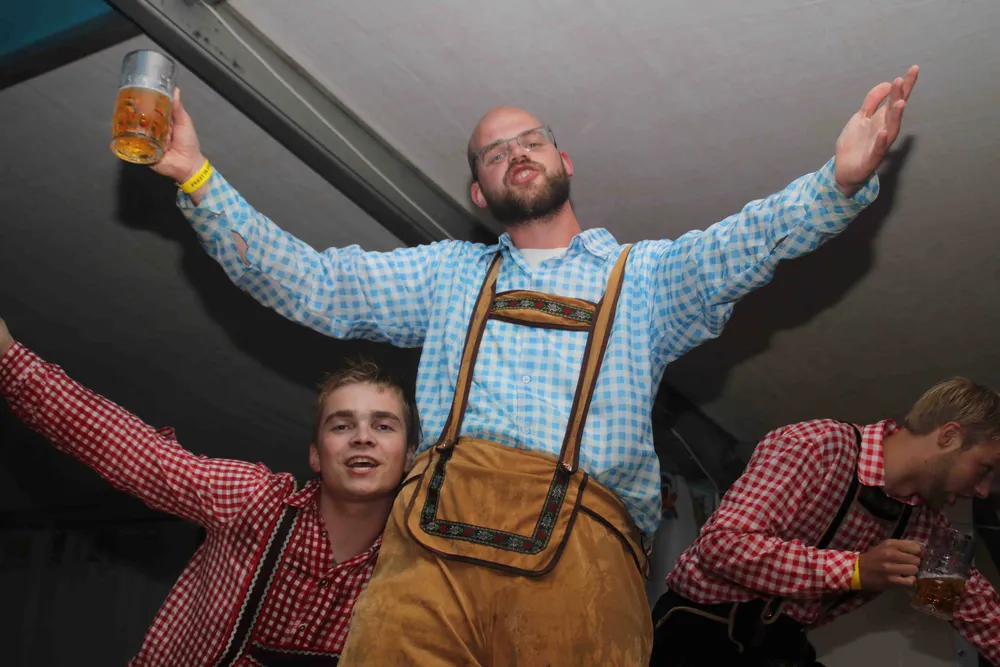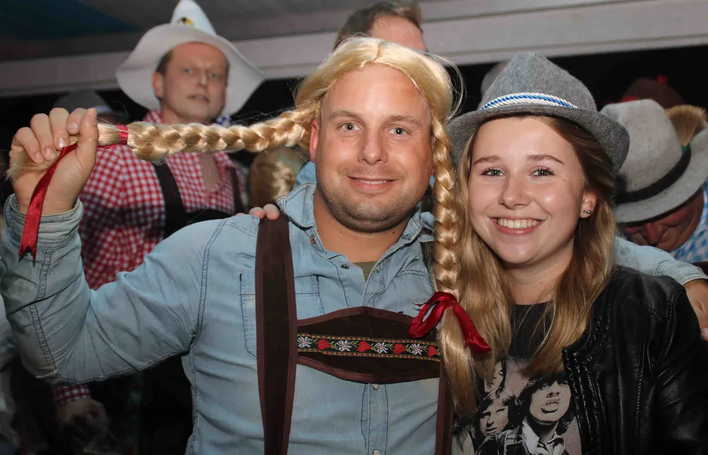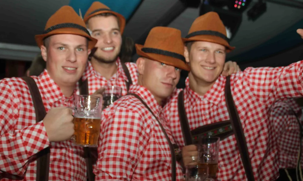 De vrouwen staken elkaar naar de kroon met de meest mooie outfits. Dat had wat mogen kosten zo verklapte een vrouw 500 euro te hebben uitgegeven aan haar jurk. Ook de heren hadden zich massaal in lederhosen gehesen, gecompleteerd met de zo typerende geruite blouse in groen/wit, rood/wit of blauw/wit. Opvallend was het aantal mannen in dezelfde outfit, die ze kennelijk massaal via Internet hadden gekocht. Voor een spotprijsje natuurlijk, al moest wel eerst het overhemd worden gewassen, omdat deze stijf stond van van het grote prijsvoordeel.