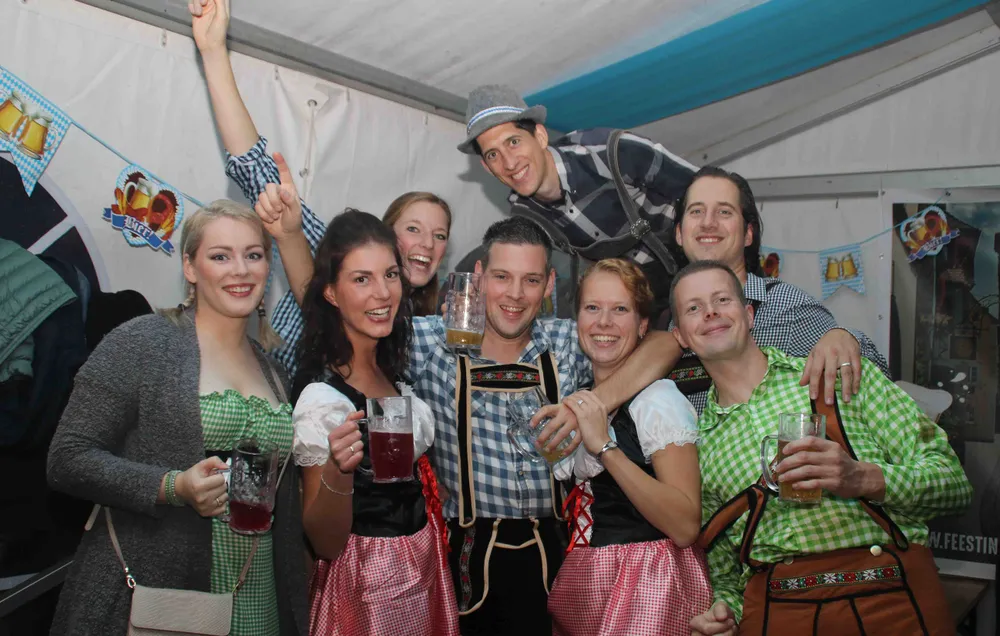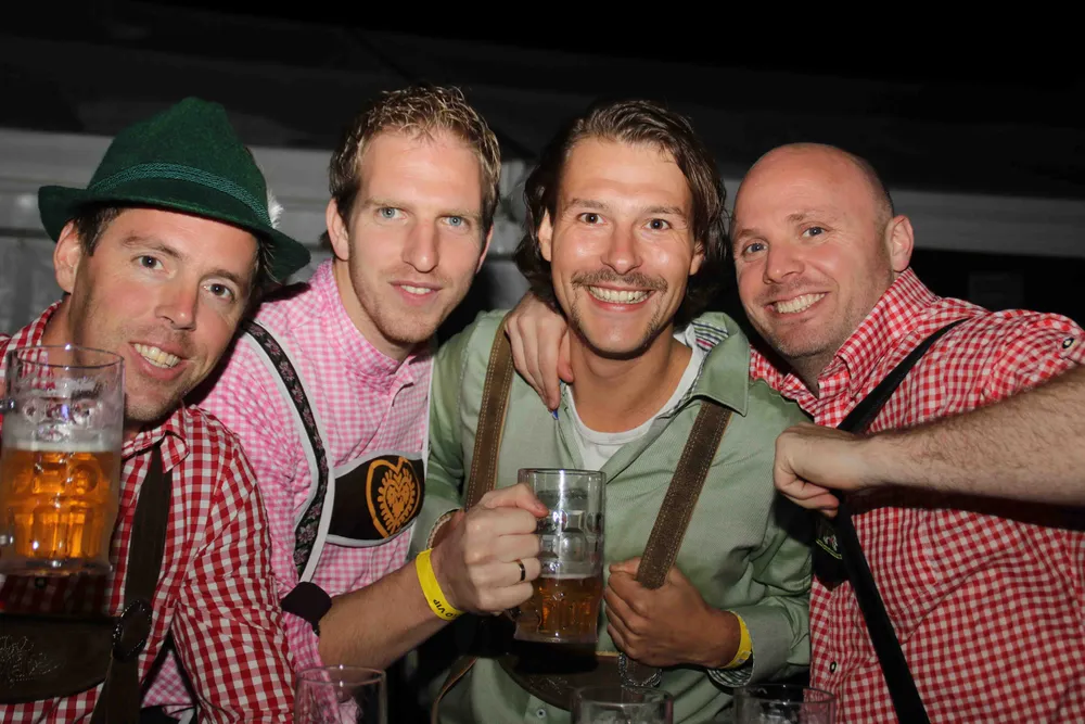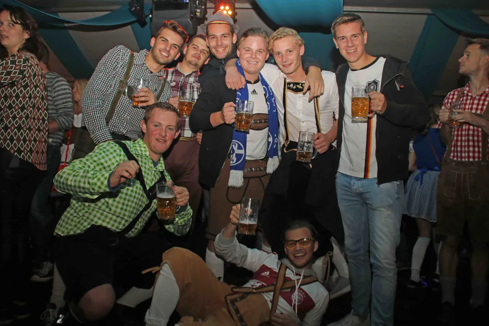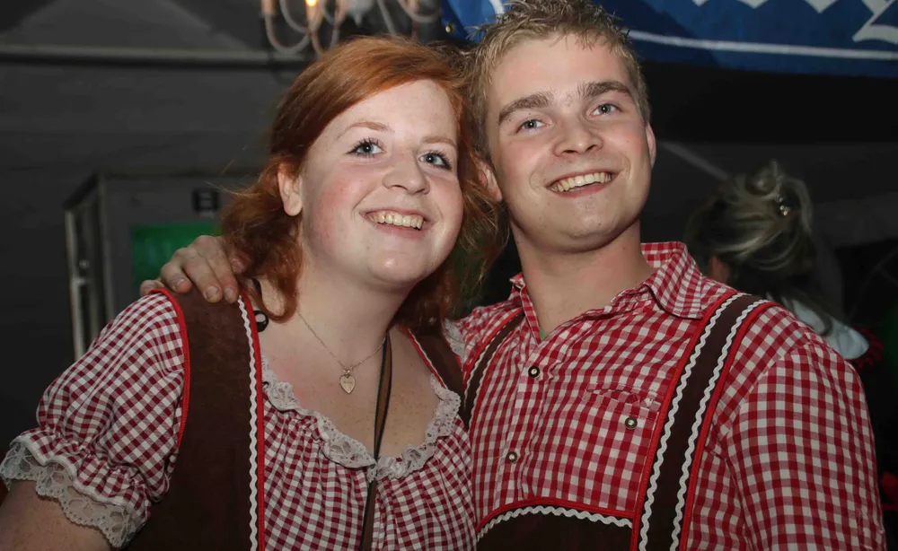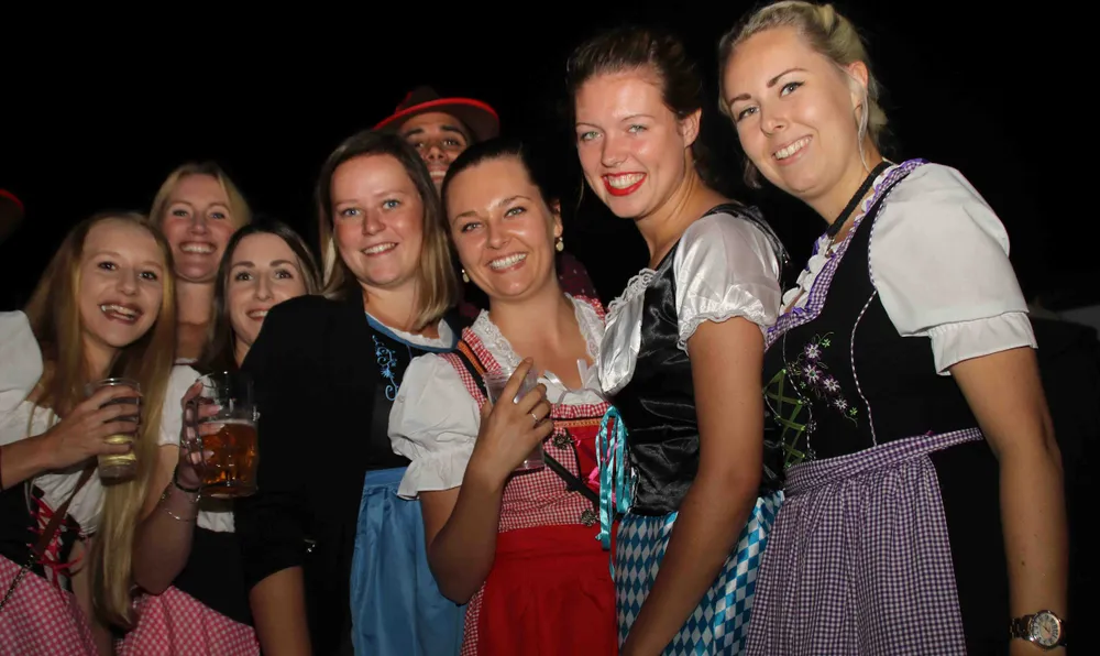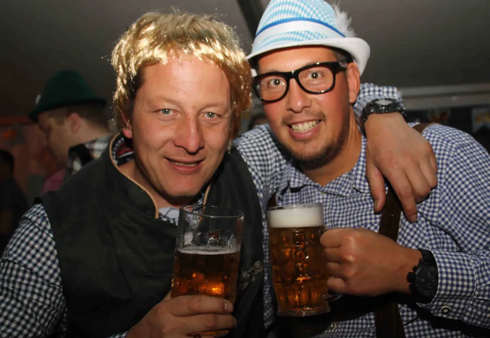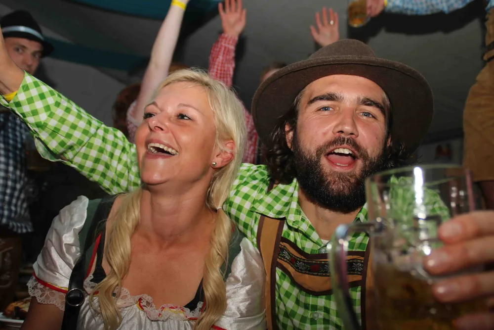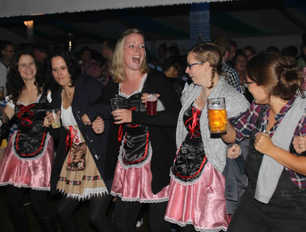 De vrouwen staken elkaar naar de kroon met de meest mooie outfits. Dat had wat mogen kosten zo verklapte een vrouw 500 euro te hebben uitgegeven aan haar jurk. Ook de heren hadden zich massaal in lederhosen gehesen, gecompleteerd met de zo typerende geruite blouse in groen/wit, rood/wit of blauw/wit. Opvallend was het aantal mannen in dezelfde outfit, die ze kennelijk massaal via Internet hadden gekocht. Voor een spotprijsje natuurlijk, al moest wel eerst het overhemd worden gewassen, omdat deze stijf stond van van het grote prijsvoordeel.