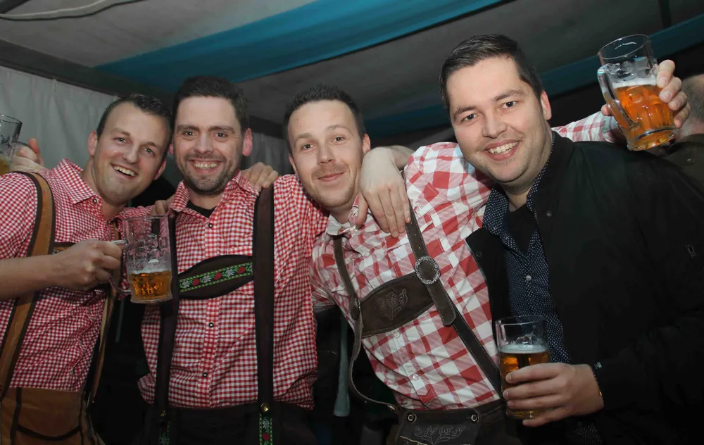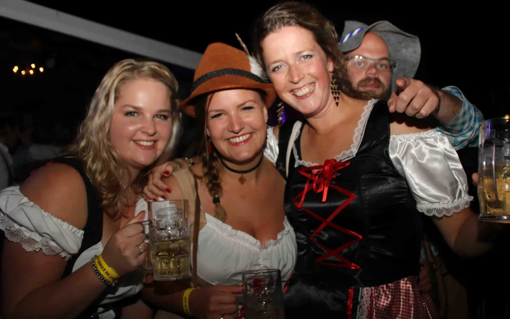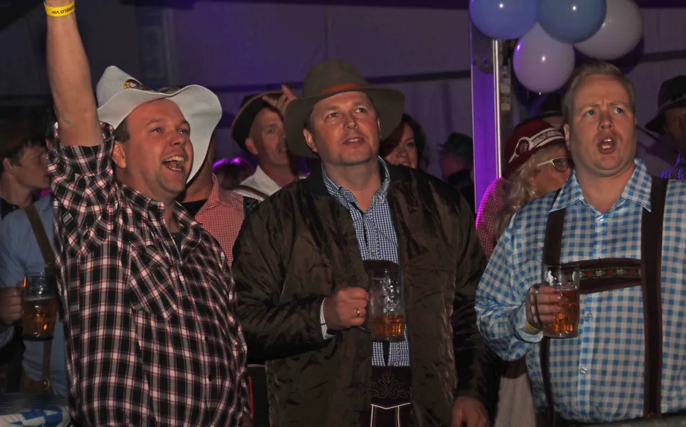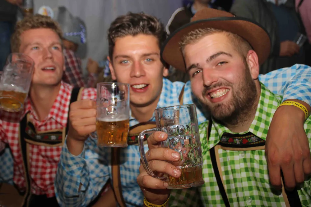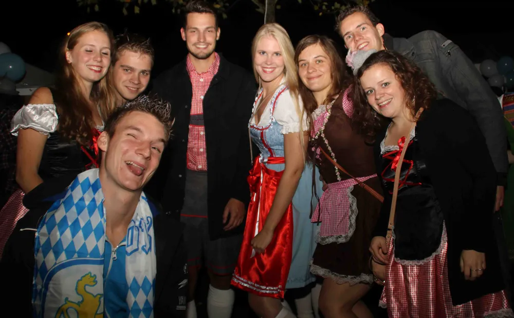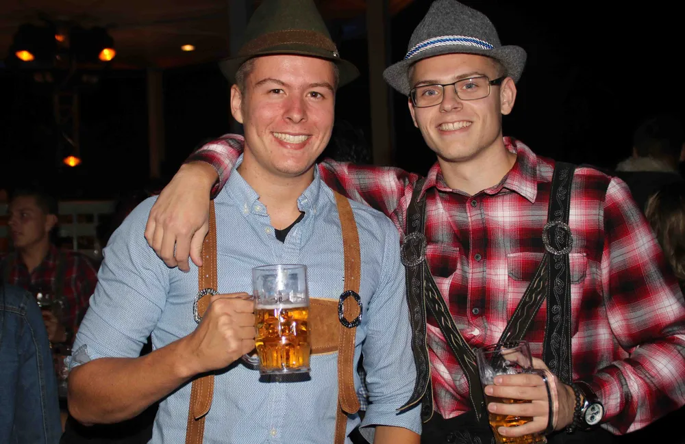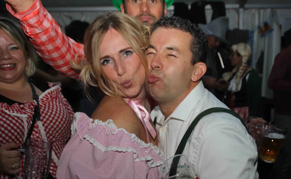 De vrouwen staken elkaar naar de kroon met de meest mooie outfits. Dat had wat mogen kosten zo verklapte een vrouw 500 euro te hebben uitgegeven aan haar jurk. Ook de heren hadden zich massaal in lederhosen gehesen, gecompleteerd met de zo typerende geruite blouse in groen/wit, rood/wit of blauw/wit. Opvallend was het aantal mannen in dezelfde outfit, die ze kennelijk massaal via Internet hadden gekocht. Voor een spotprijsje natuurlijk, al moest wel eerst het overhemd worden gewassen, omdat deze stijf stond van van het grote prijsvoordeel.