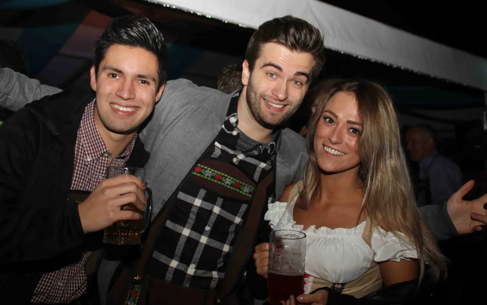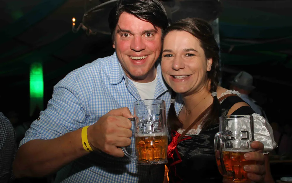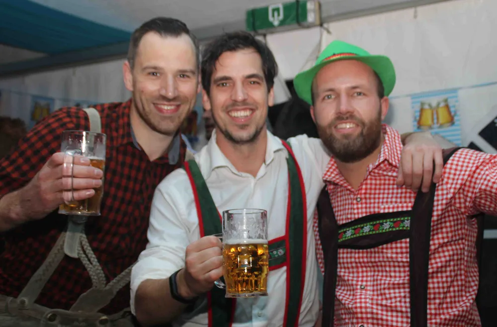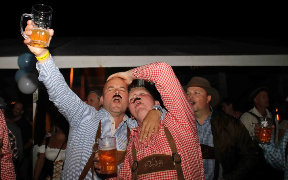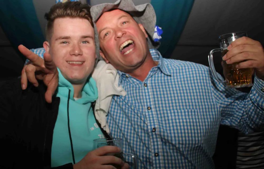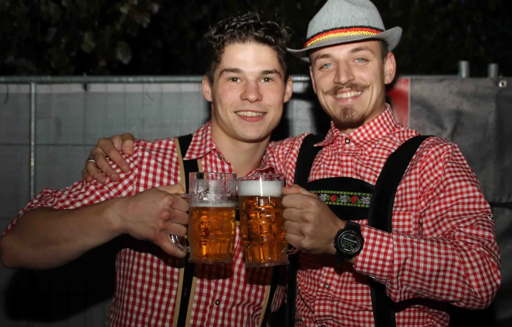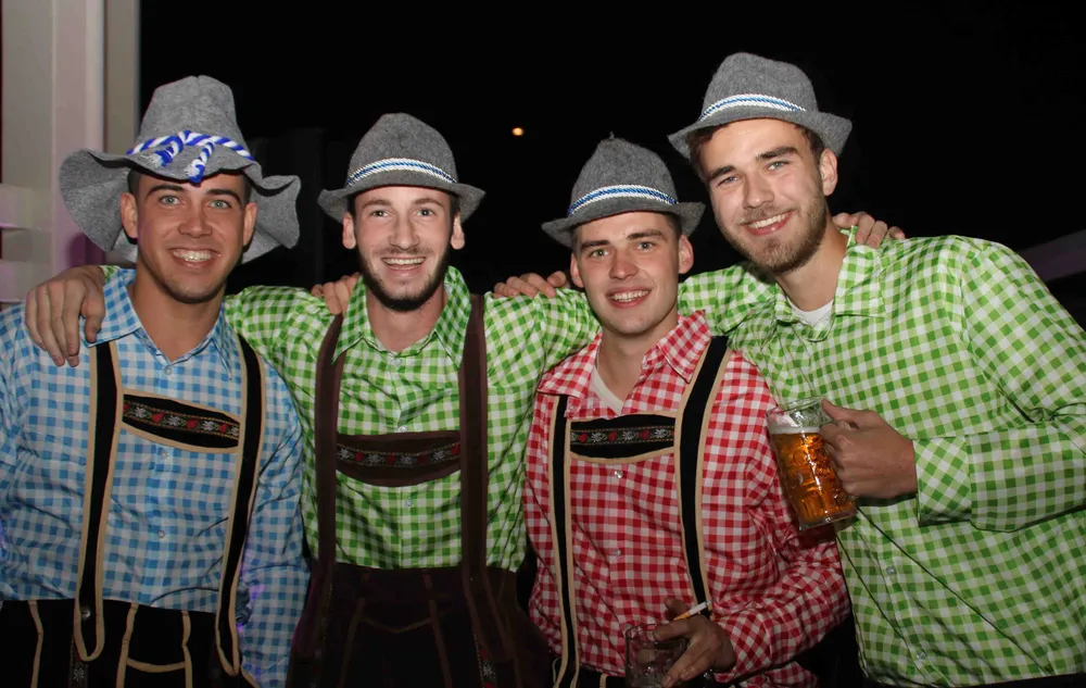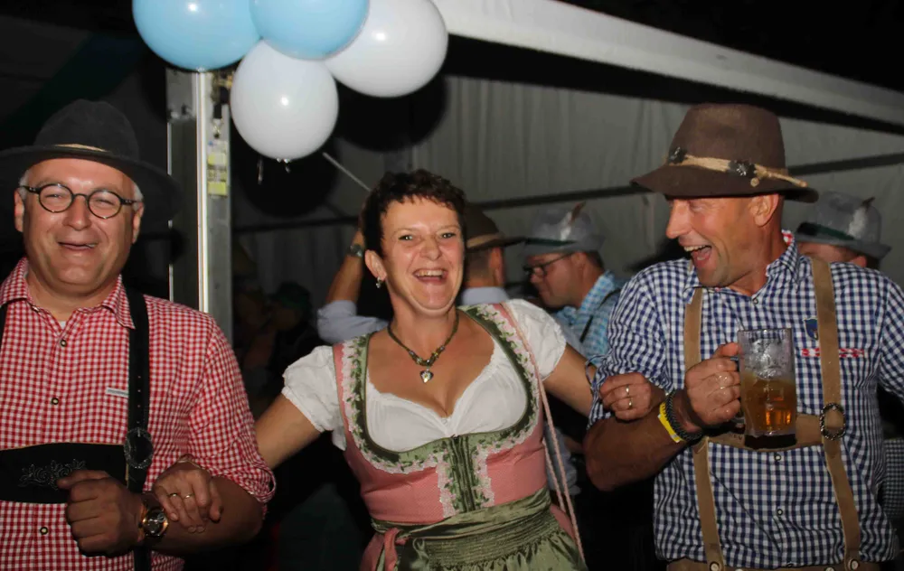De vrouwen staken elkaar naar de kroon met de meest mooie outfits. Dat had wat mogen kosten zo verklapte een vrouw 500 euro te hebben uitgegeven aan haar jurk. Ook de heren hadden zich massaal in lederhosen gehesen, gecompleteerd met de zo typerende geruite blouse in groen/wit, rood/wit of blauw/wit. Opvallend was het aantal mannen in dezelfde outfit, die ze kennelijk massaal via Internet hadden gekocht. Voor een spotprijsje natuurlijk, al moest wel eerst het overhemd worden gewassen, omdat deze stijf stond van van het grote prijsvoordeel.