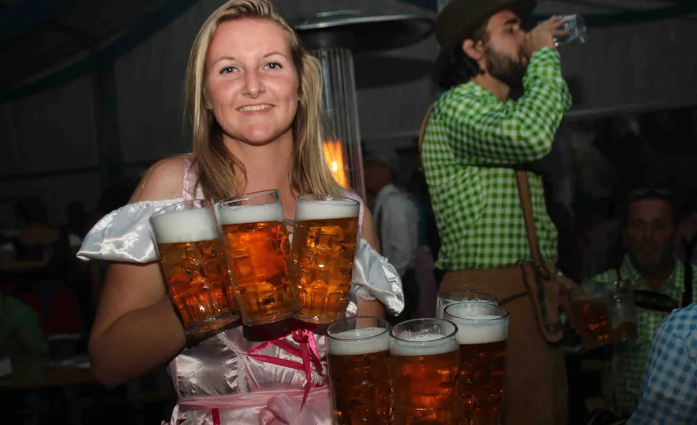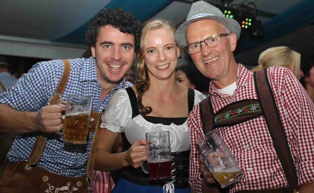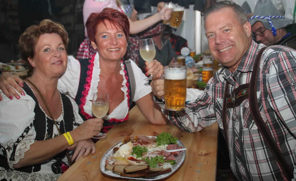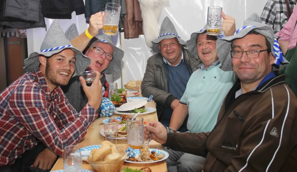 Al waren de weergoden het Oktoberfeest heel goed gezind, toch was het een sport om droog te blijven. Er werd namelijk heel geestdriftig geproost en gedanst met de pullen die tot de rand toe gevuld waren met bier.