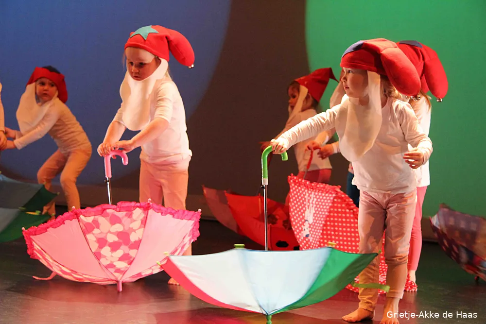 Eigenaar Renate Goossensenen haar 17 groepen met leerlingen kunnen gerust stellen dat ze zich hebben overtroffen met DansTaal, de voorstelling die twee maal vandaag, zaterdag 16 januari, werd opgevoerd in Theater De Dialoog ter gelegenheid van het 5-jarig bestaan van Ermelo's modernste dansschool. Iedere groep, van piepklein tot groot danste hun eigen dans.